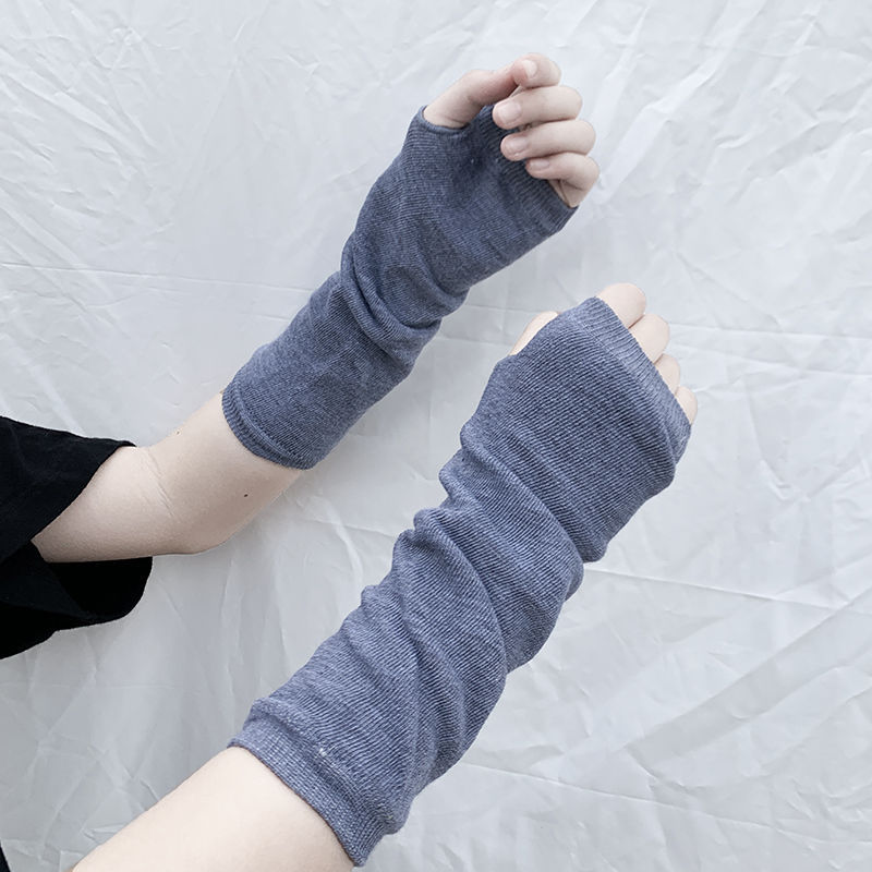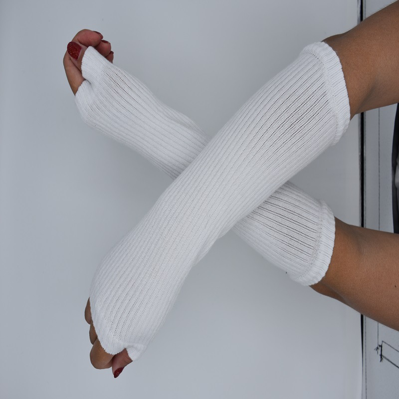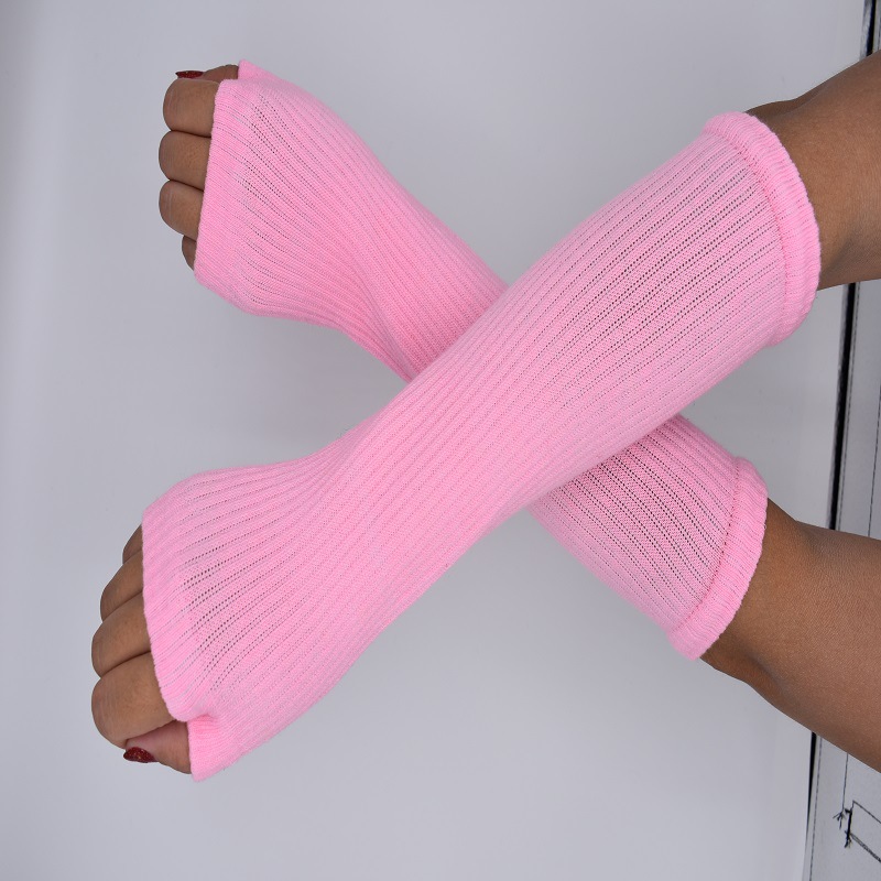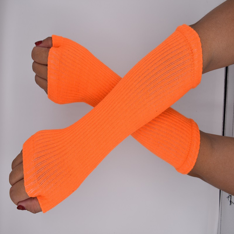 재고 공급 스트라이프 한국어 긴 장갑 팔 커버 도매 형광색 손가락 면 긴 손목 커버