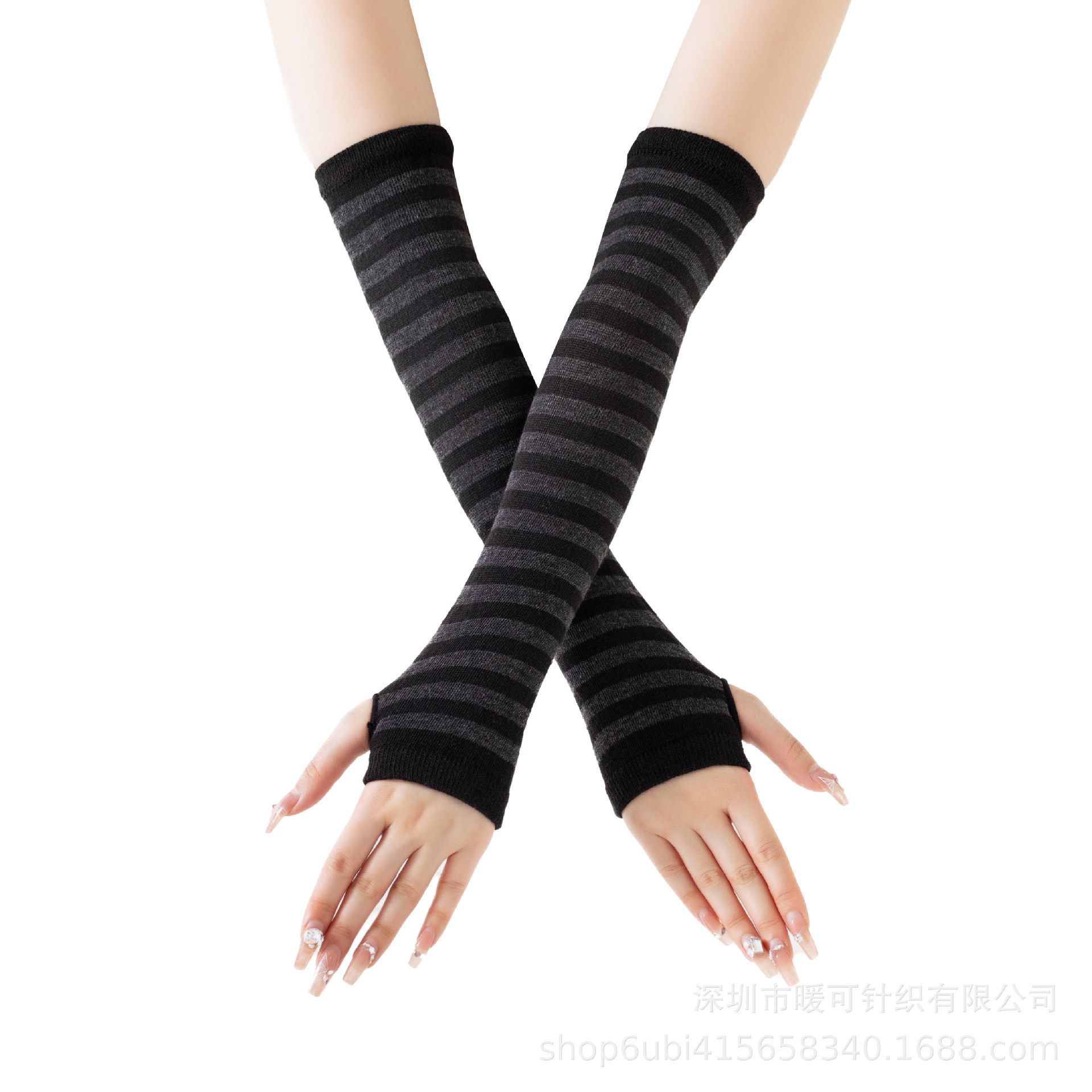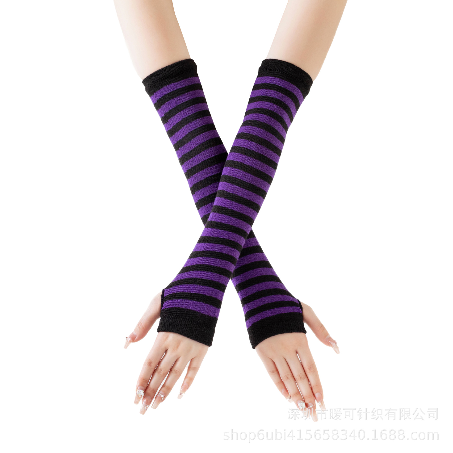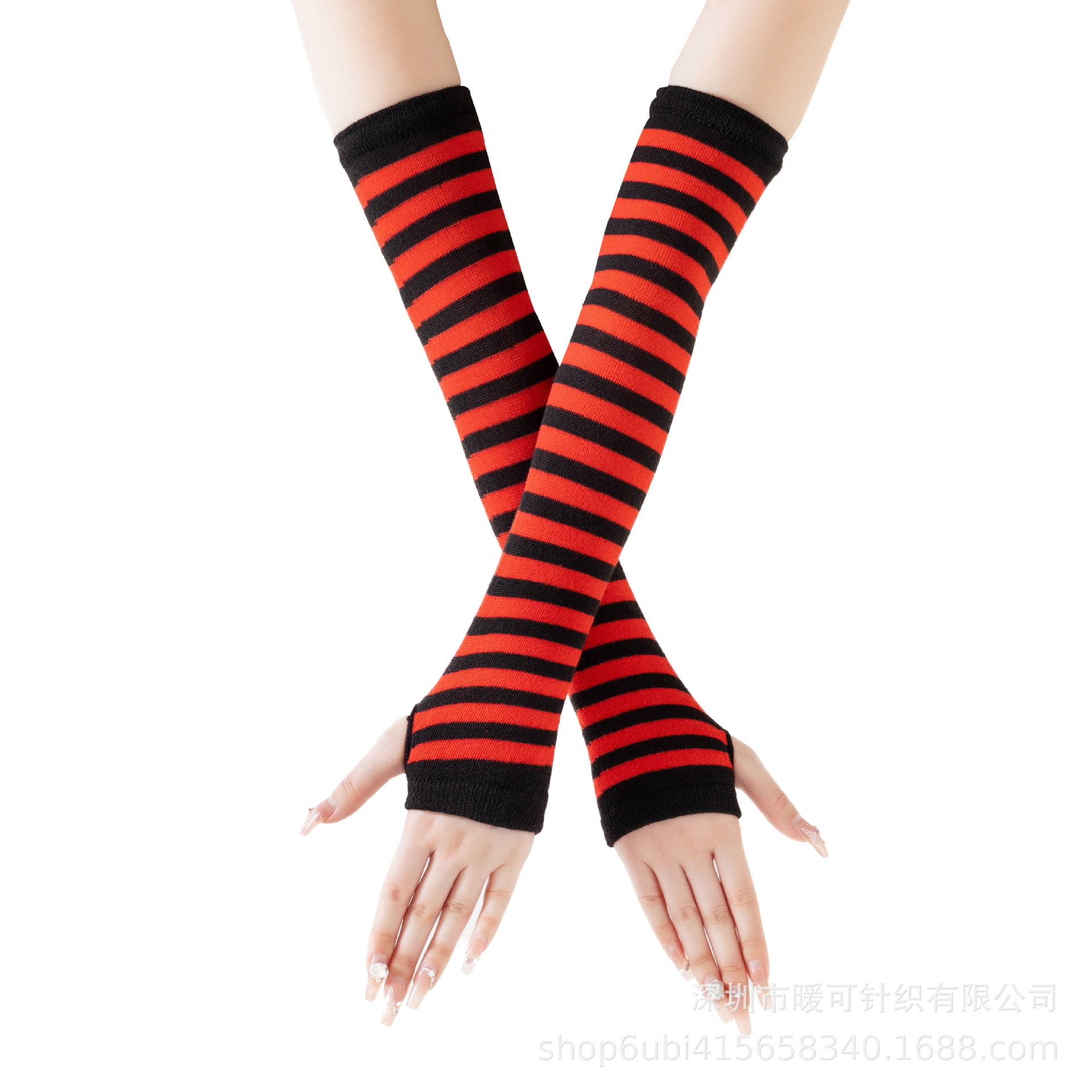 재고 공급 스트라이프 한국어 긴 장갑 팔 커버 도매 형광색 손가락 면 긴 손목 커버스토어 가기