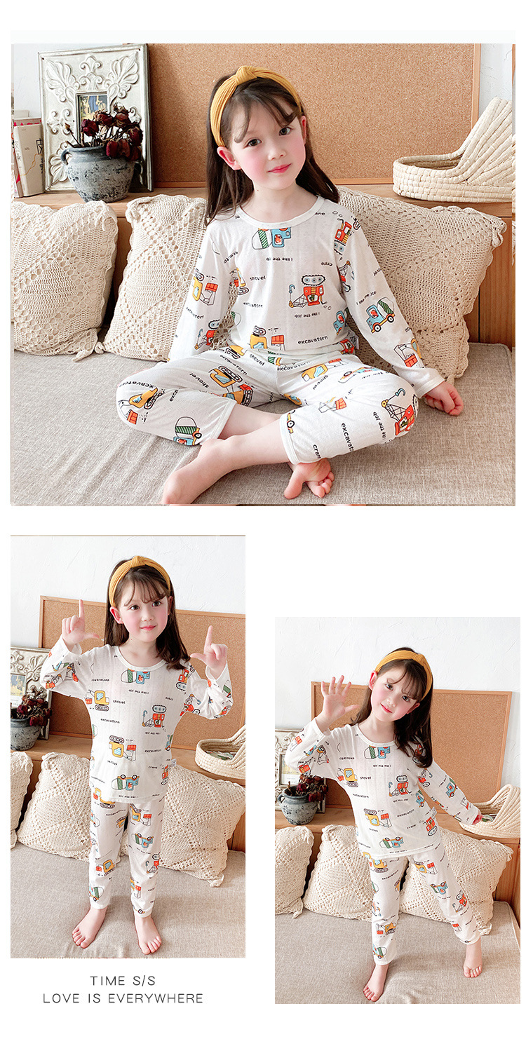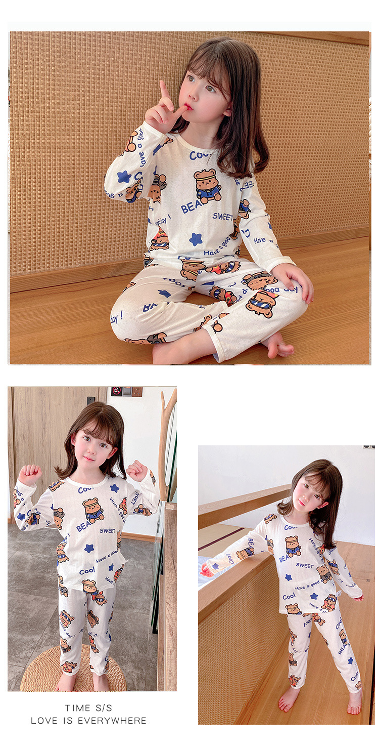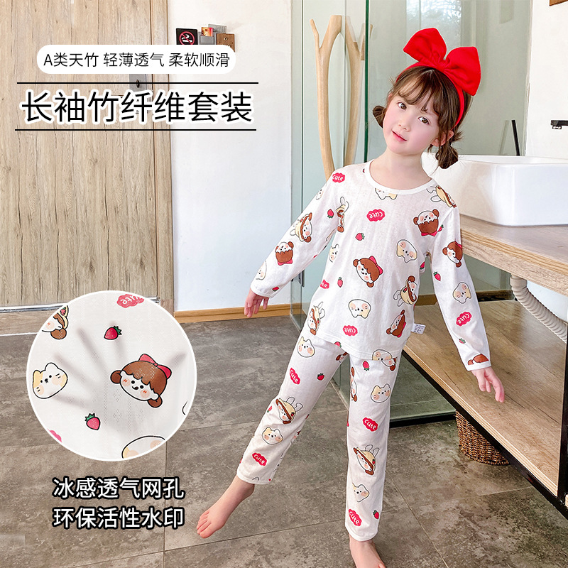 여름 대나무 섬유 73-150cm 큰 어린이를위한 잠옷 얇은 긴 소매 바지 에어컨 룸 통기성 세트
