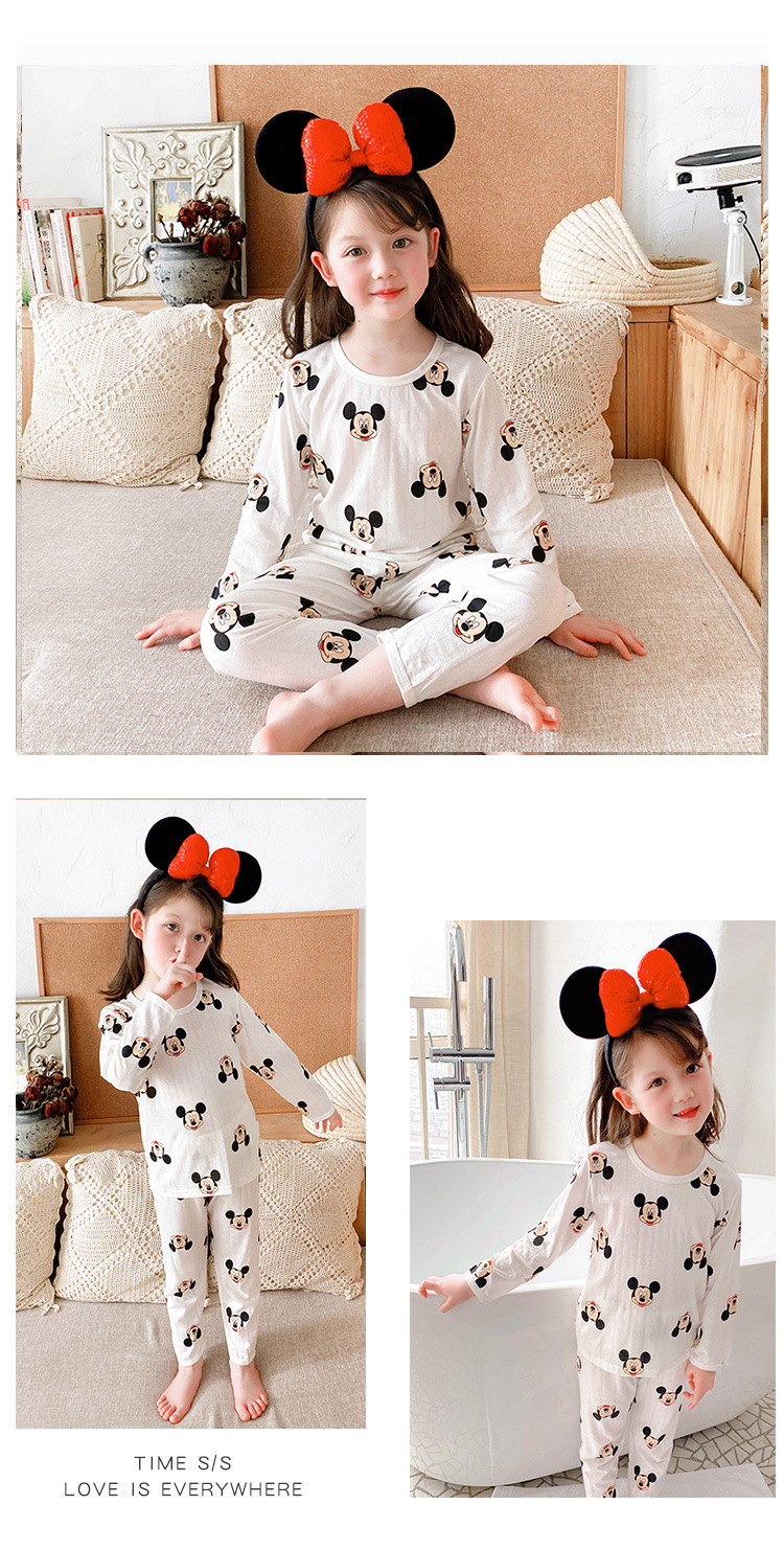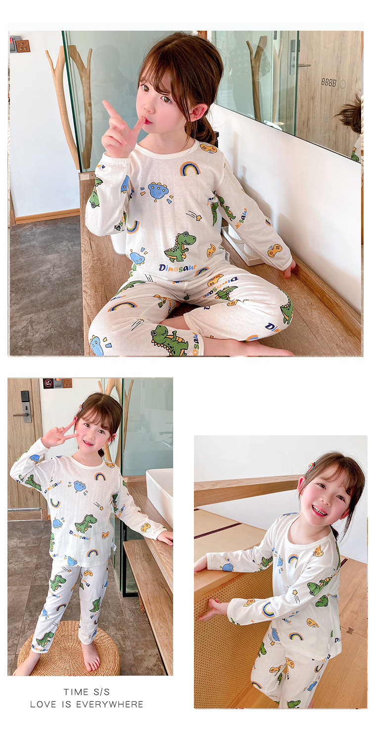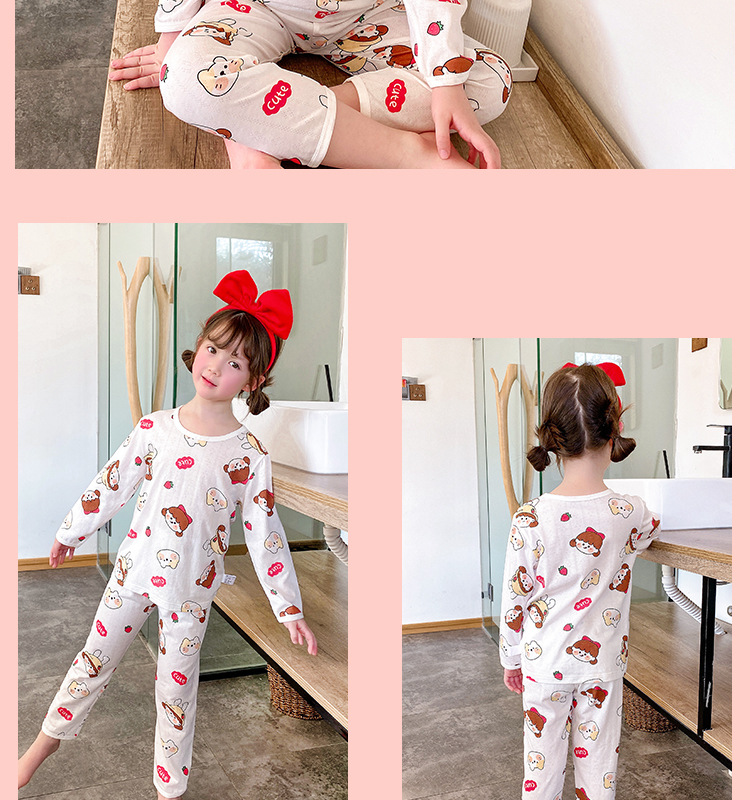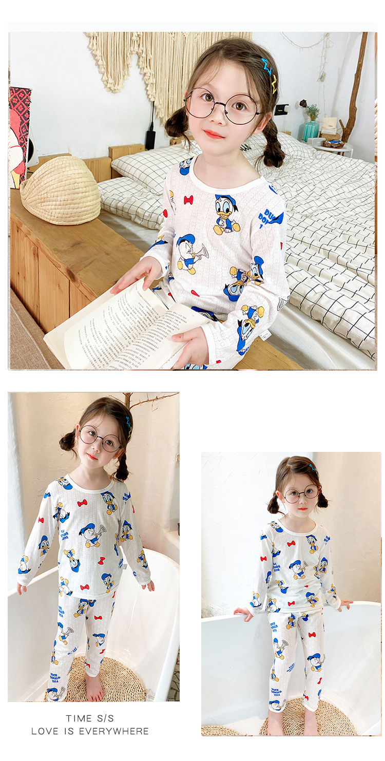 여름 대나무 섬유 73-150cm 큰 어린이를위한 잠옷 얇은 긴 소매 바지 에어컨 룸 통기성 세트