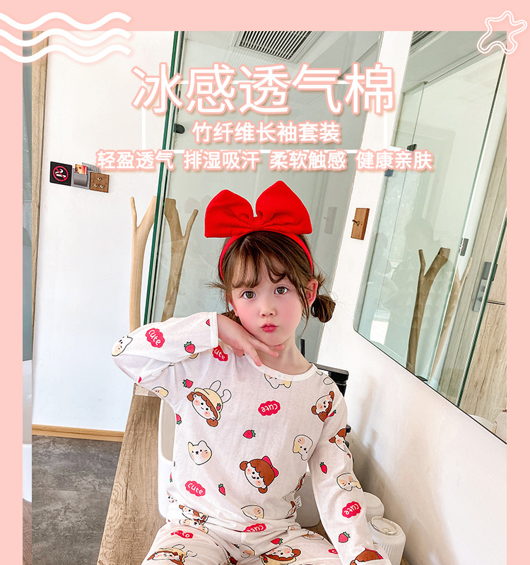 여름 대나무 섬유 73-150cm 큰 어린이를위한 잠옷 얇은 긴 소매 바지 에어컨 룸 통기성 세트스토어 가기