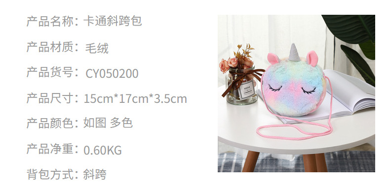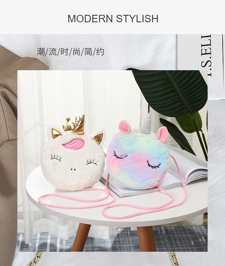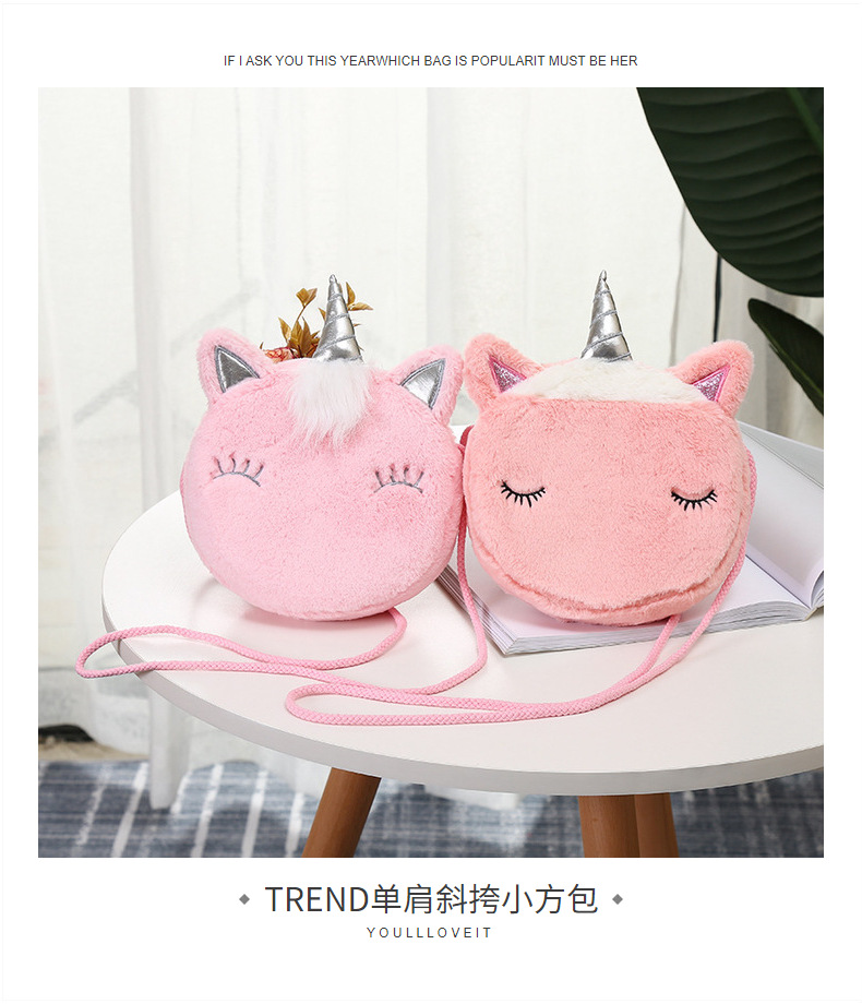크로스 보더 새로운 유니콘 플러시 숄더 메신저 백 보관 가방 어린이 학생 휴대용 휴대 전화 가방스토어 가기