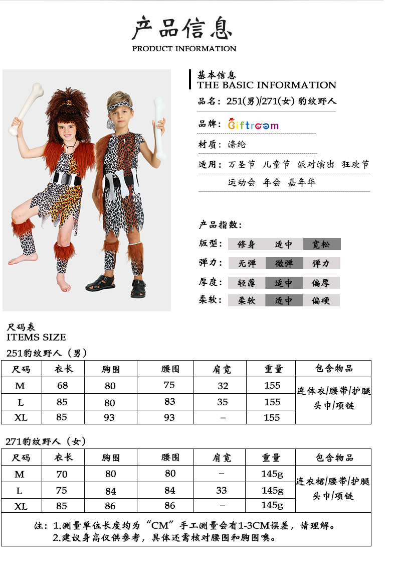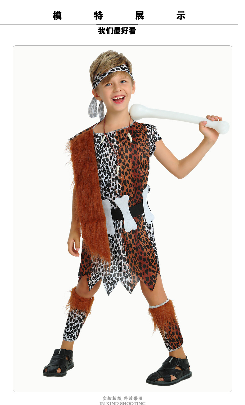 할로윈 의상 코스프레 미국 족장 인디언 아이 레오파드 무늬 야만인 공연 무대 소품 세트스토어 가기