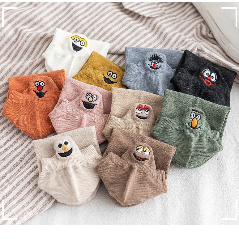 귀여운 일본식 얕은 양말 수 놓은 보트 양말 만화 성격 재미있는 표현 가방 봄과 여름 여성을위한 유행 양말스토어 가기