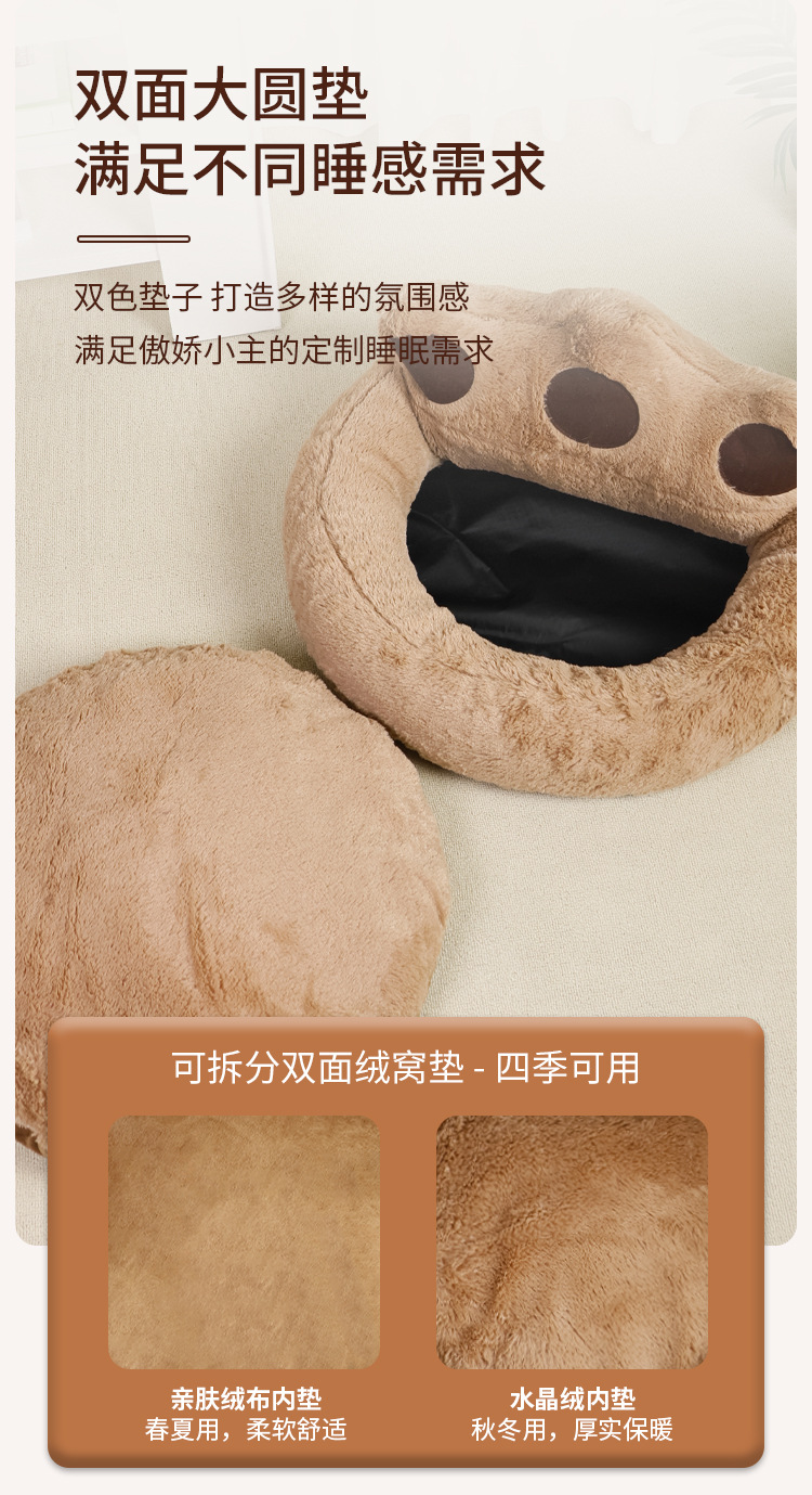 애완동물 침대 도매, 탈부착 및 세탁 가능한 등받이, 강아지/고양이 침대, 애완동물 용품, 가을/겨울용 따뜻한 곰발바닥 강아지 매트/침대, 두꺼운