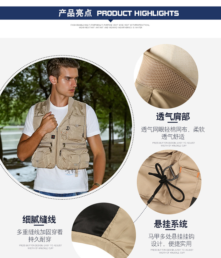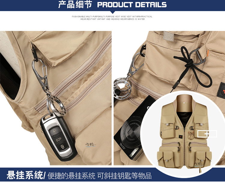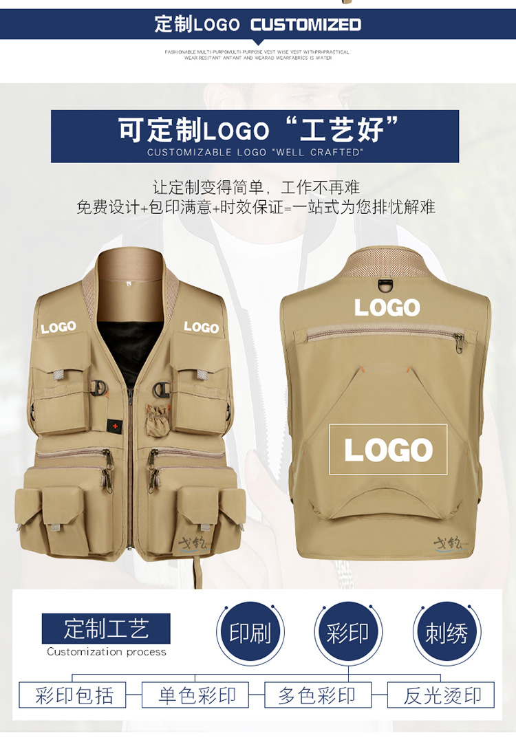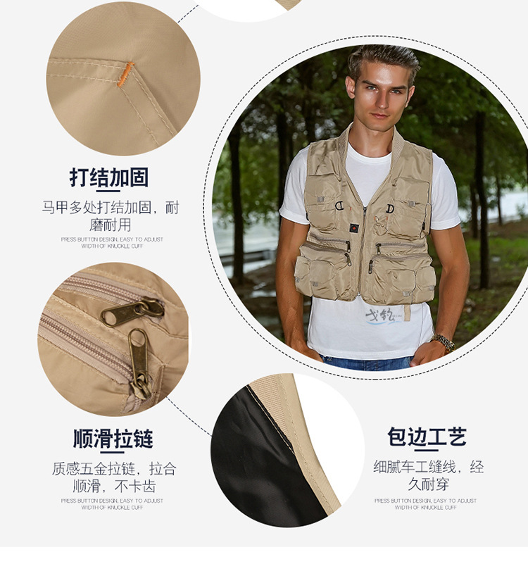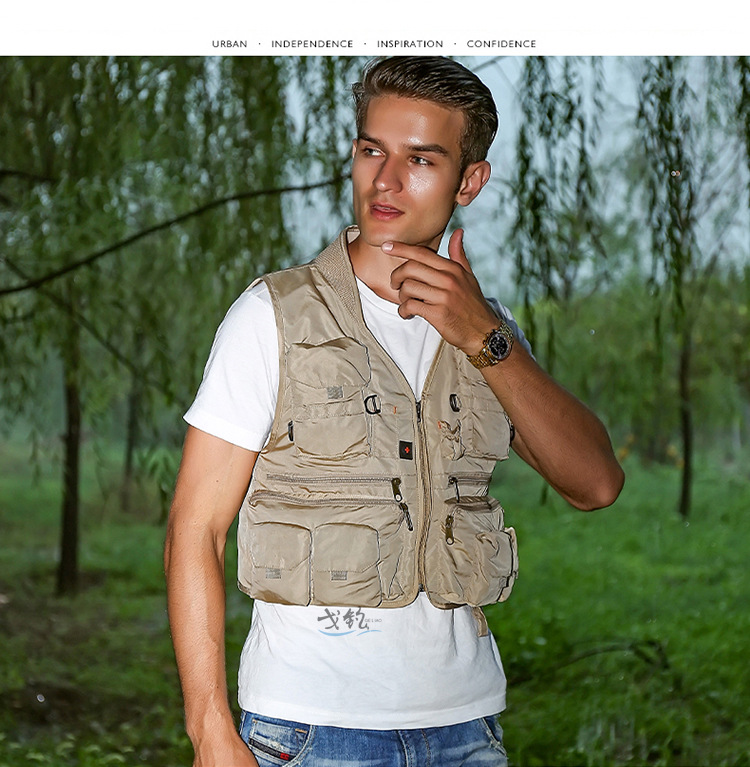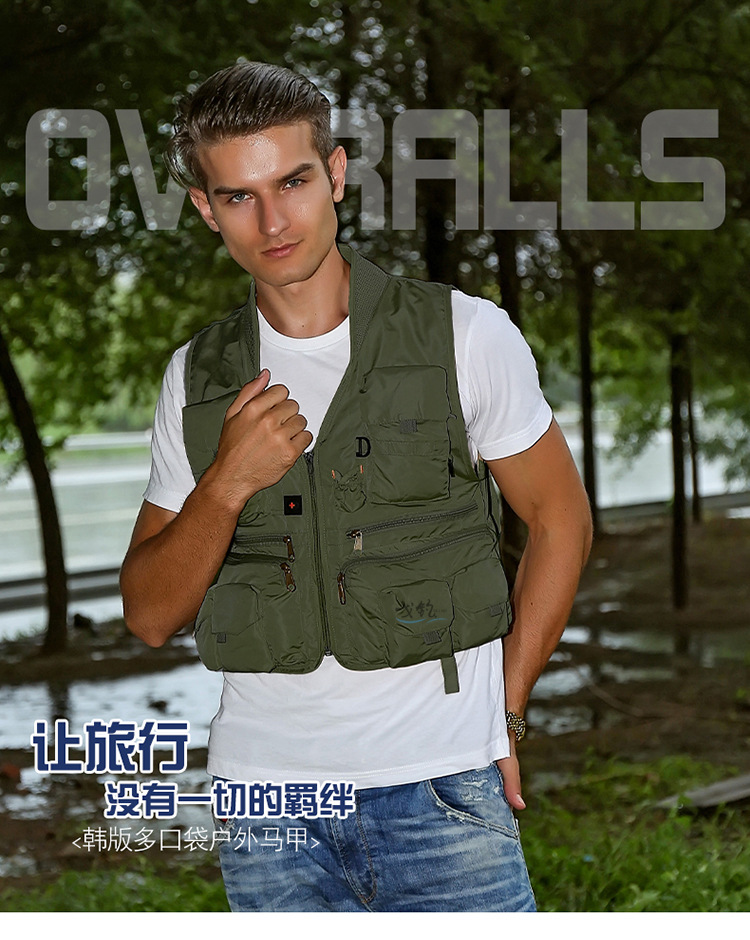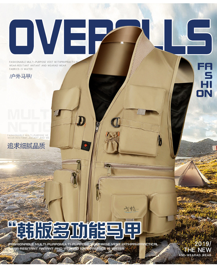 크로스 보더 봄과 가을 한국식 멀티 포켓 낚시 조끼 야외 사진 조끼 남성용 주문 자수 로고 인쇄 작업복