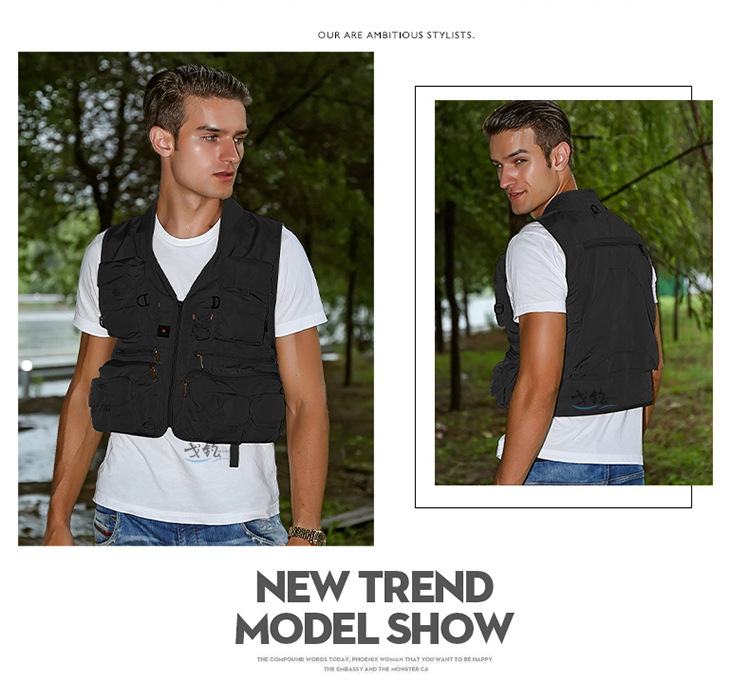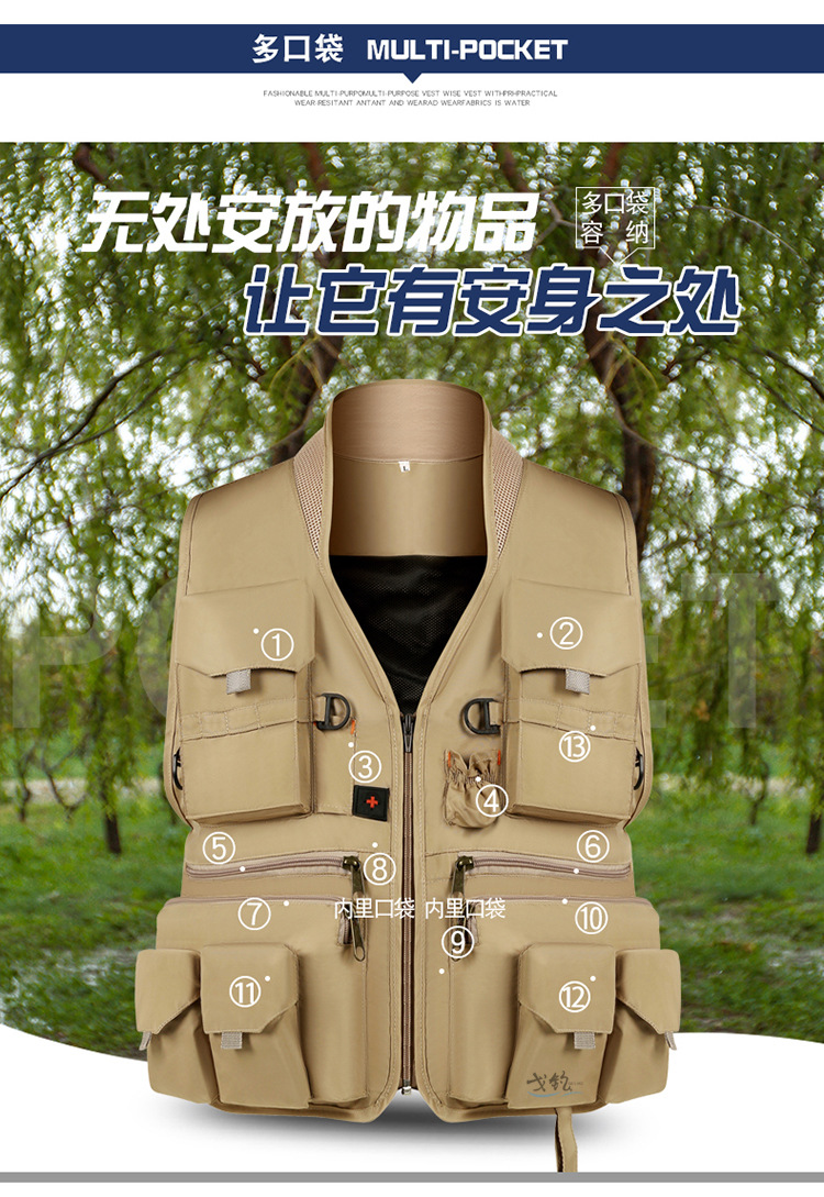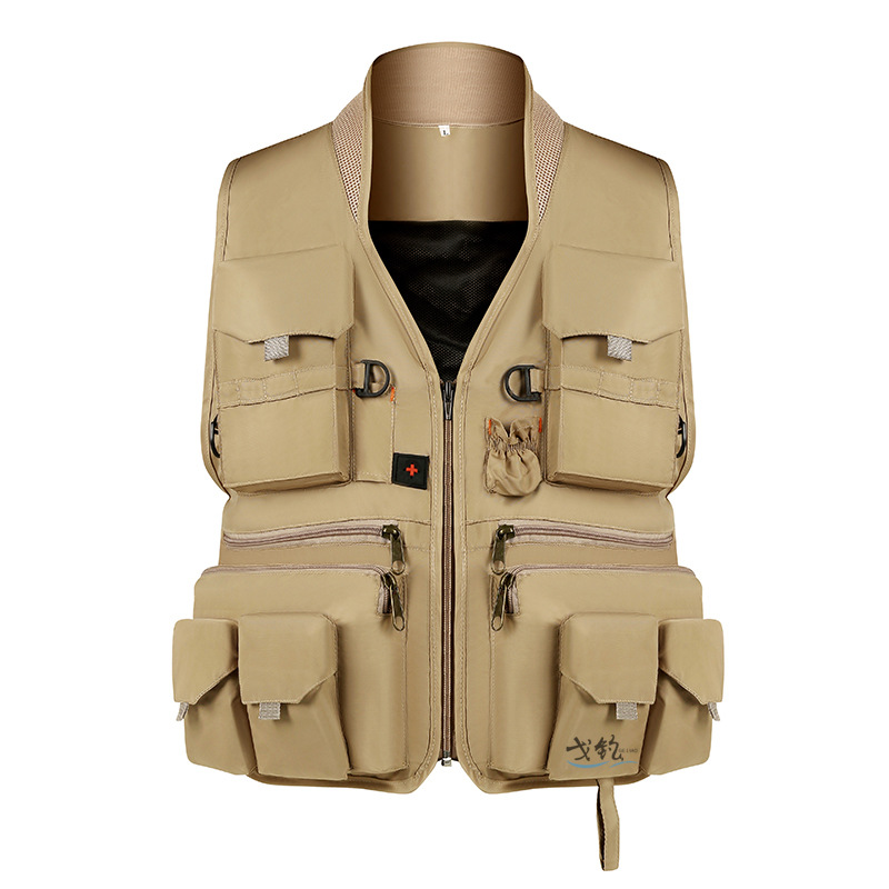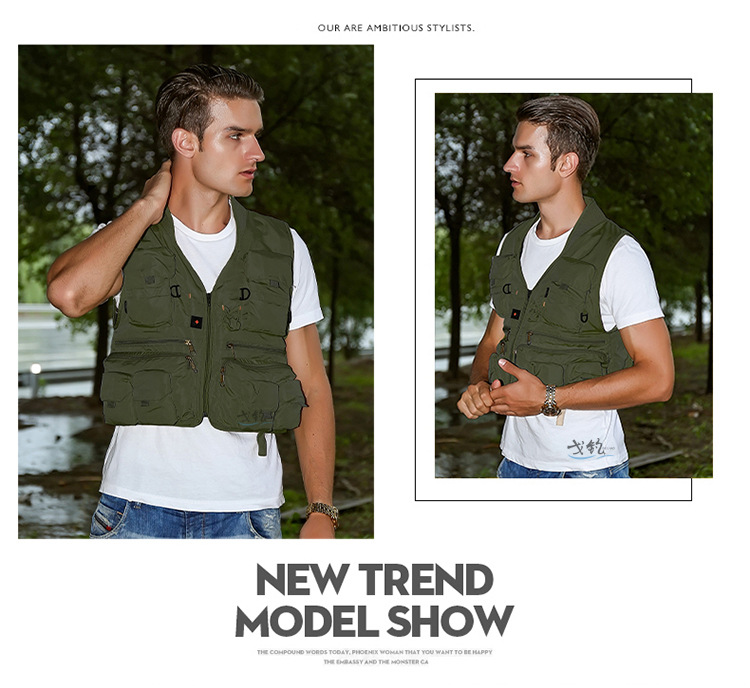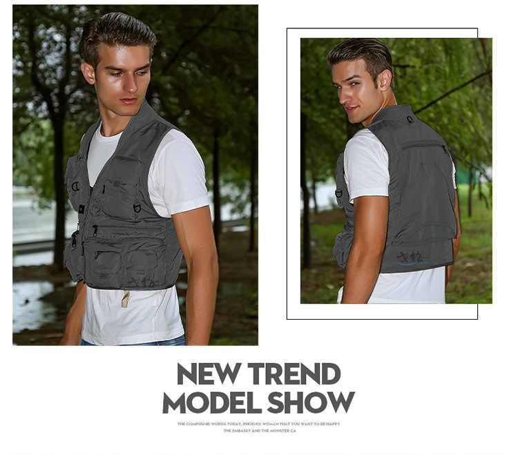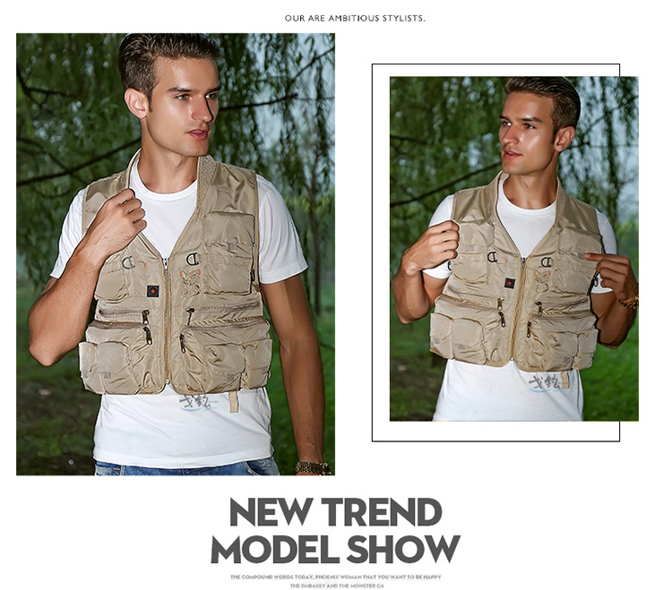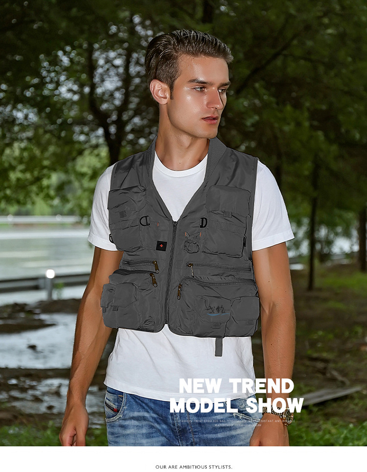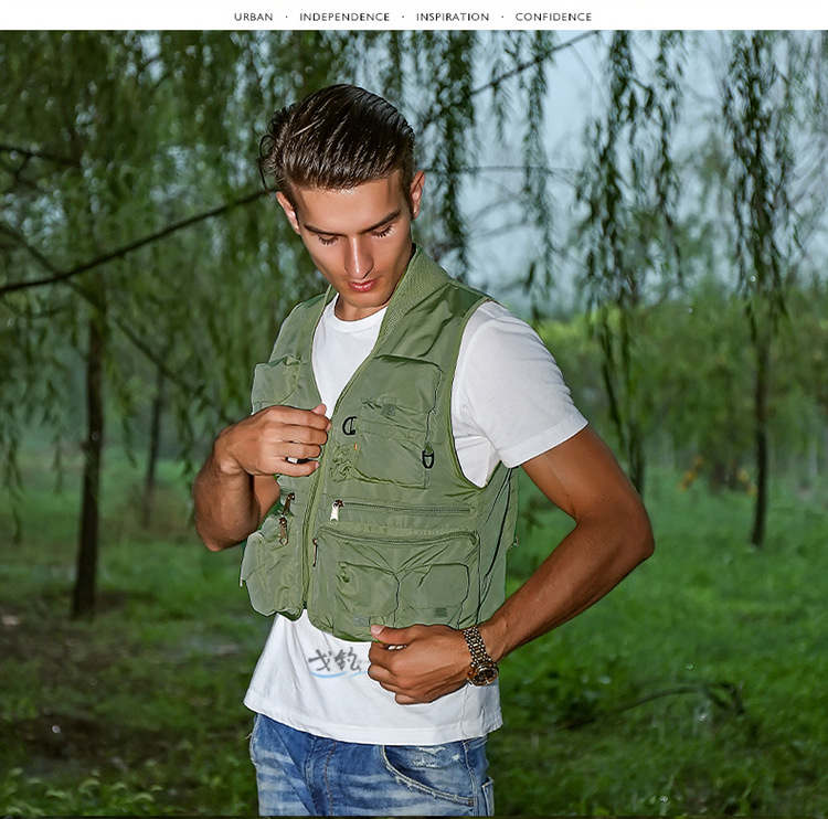 크로스 보더 봄과 가을 한국식 멀티 포켓 낚시 조끼 야외 사진 조끼 남성용 주문 자수 로고 인쇄 작업복