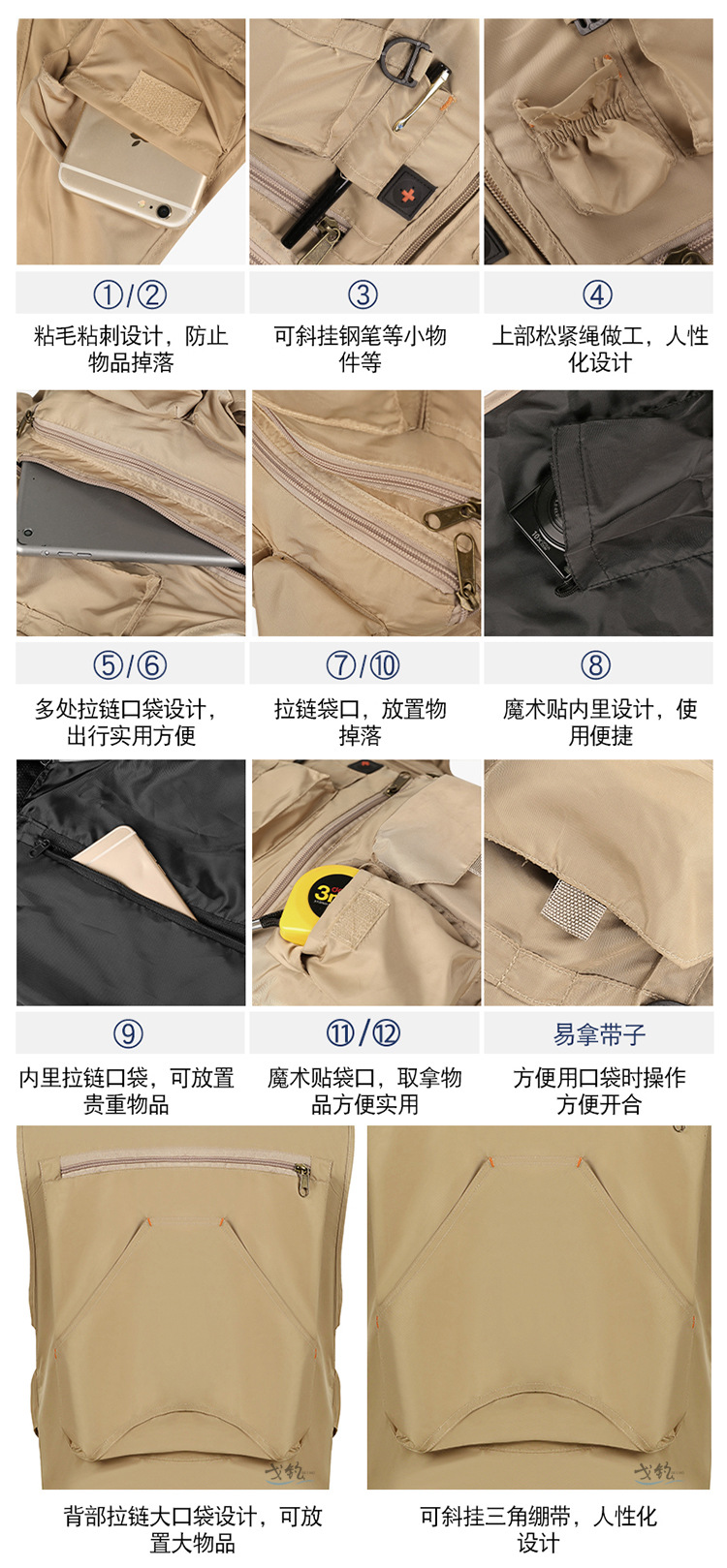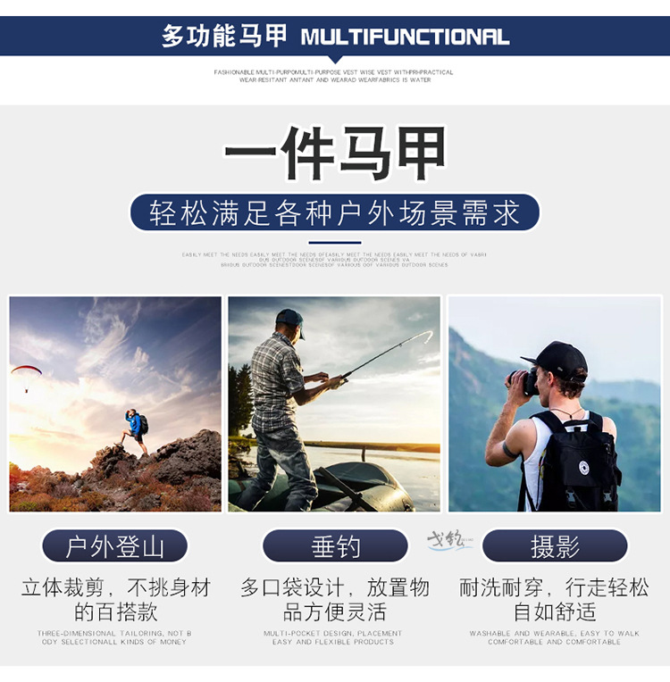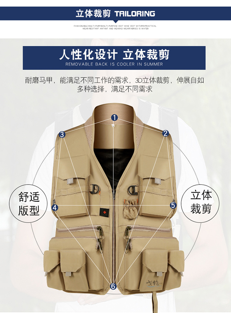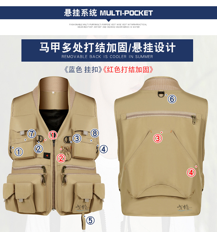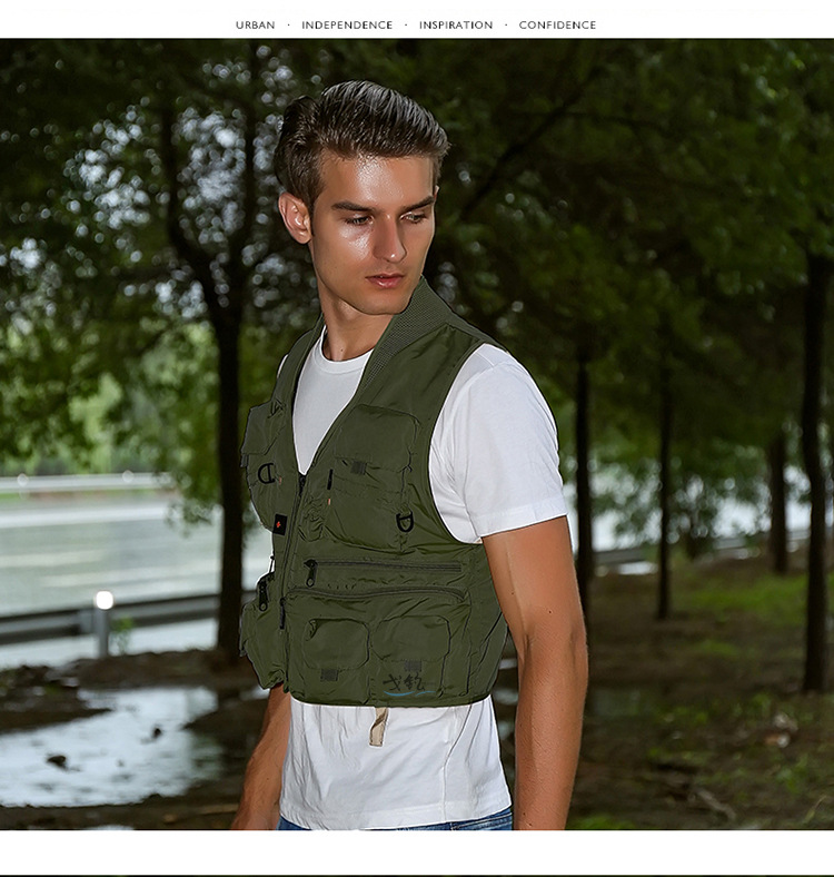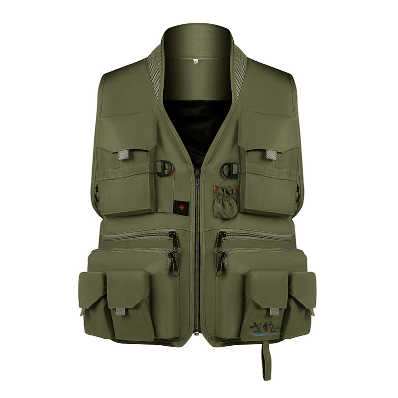 크로스 보더 봄과 가을 한국식 멀티 포켓 낚시 조끼 야외 사진 조끼 남성용 주문 자수 로고 인쇄 작업복