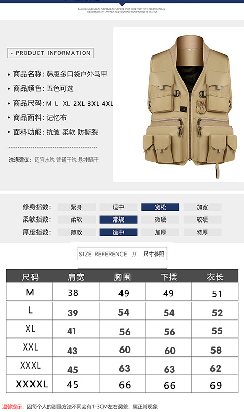 크로스 보더 봄과 가을 한국식 멀티 포켓 낚시 조끼 야외 사진 조끼 남성용 주문 자수 로고 인쇄 작업복스토어 가기