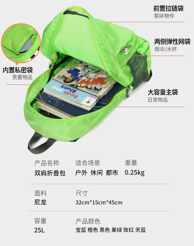여행 배낭 도매 야외 배낭 경량 접이식 경량 다기능 등산 가방 남성과 여성 스포츠 가방