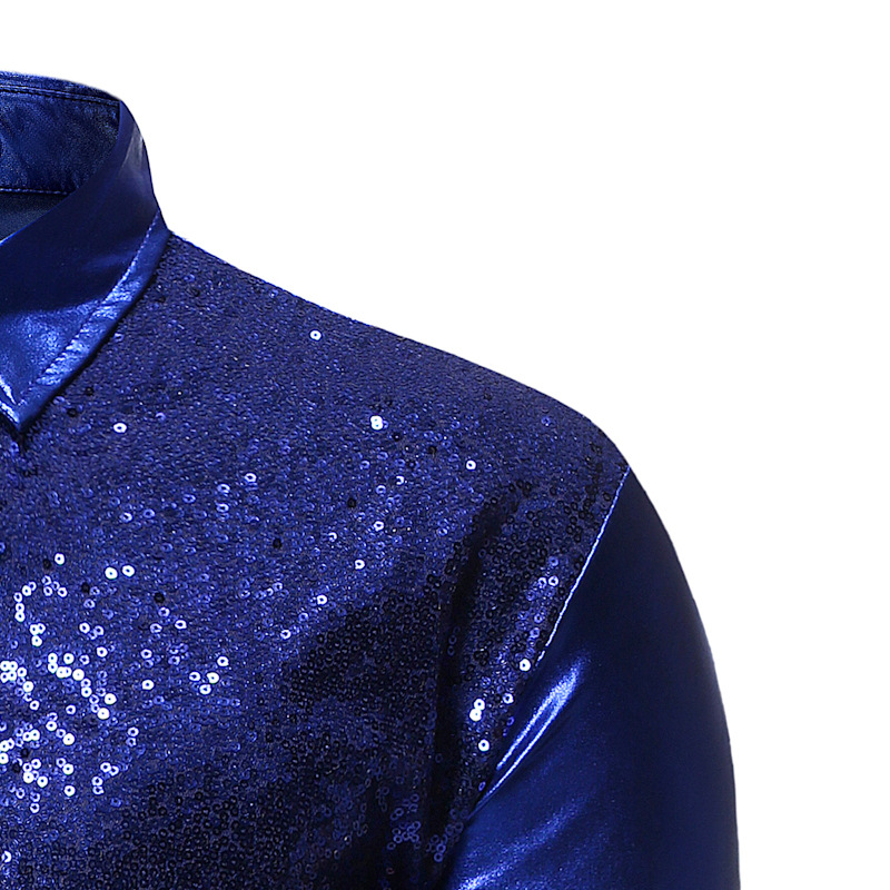 크로스 보더 남자의 나이트 클럽 여러 가지 빛깔의 유럽 크기 셔츠 남자의 스팽글 브론징 스티치 댄스 세트 셔츠 ZT-CS86스토어 가기