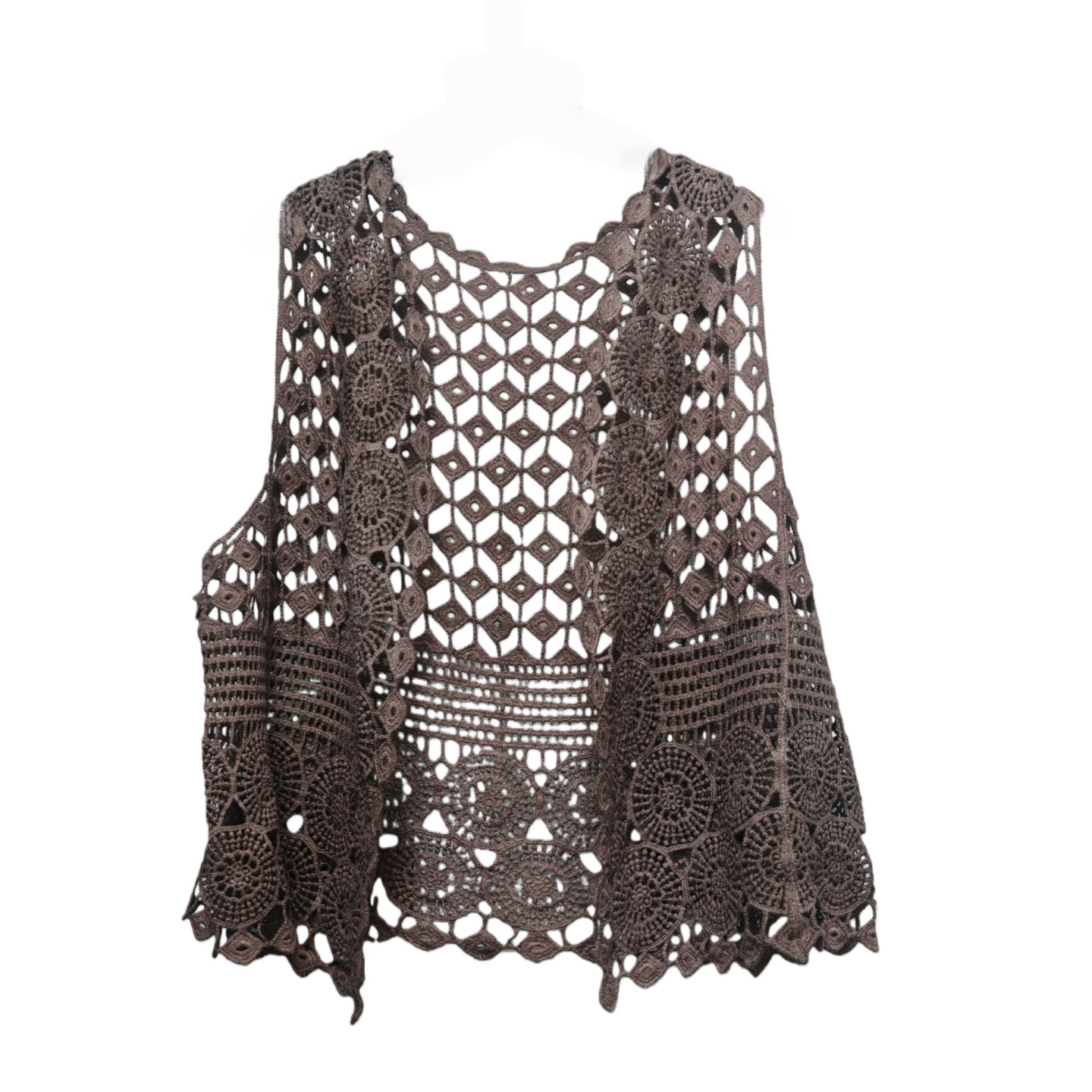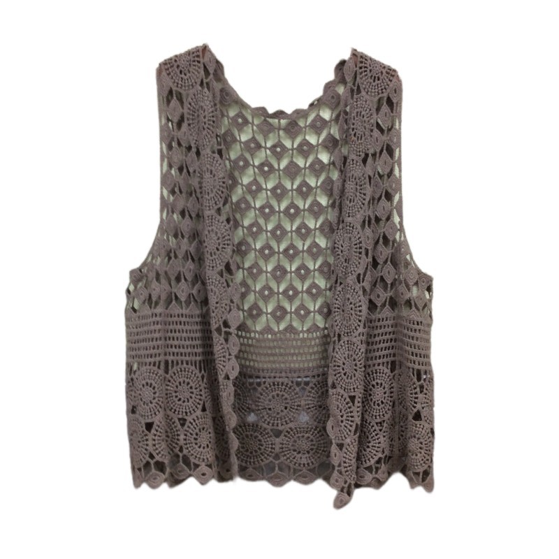 대학 스타일 중공 조끼 여성용 여름 빈티지 크로 셰 뜨개질 모든 경기 민소매 회색 얇은 외부 카디건 조끼