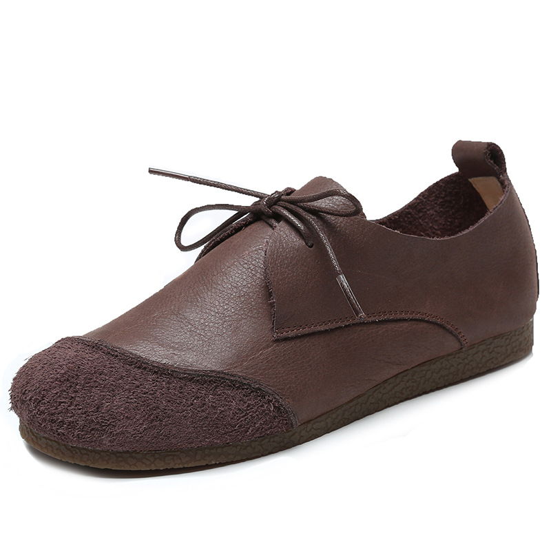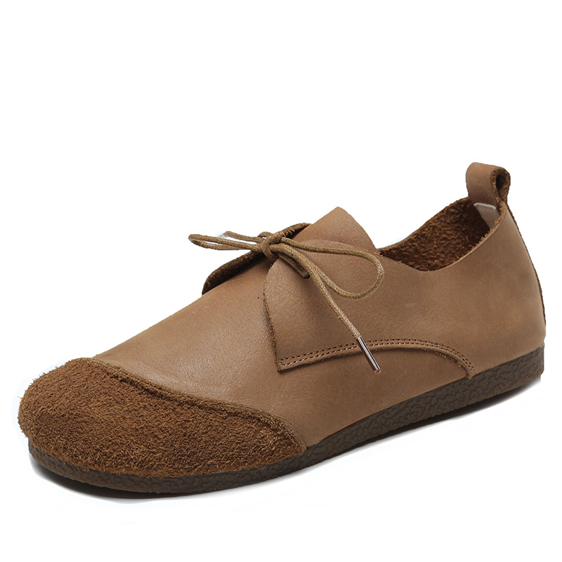 센녀 스타일 수제 끈 묶는 천연 소가죽 플랫 소프트 솔 다용도 캐주얼 여성화 2011-15 내구성 레트로 스타일스토어 가기