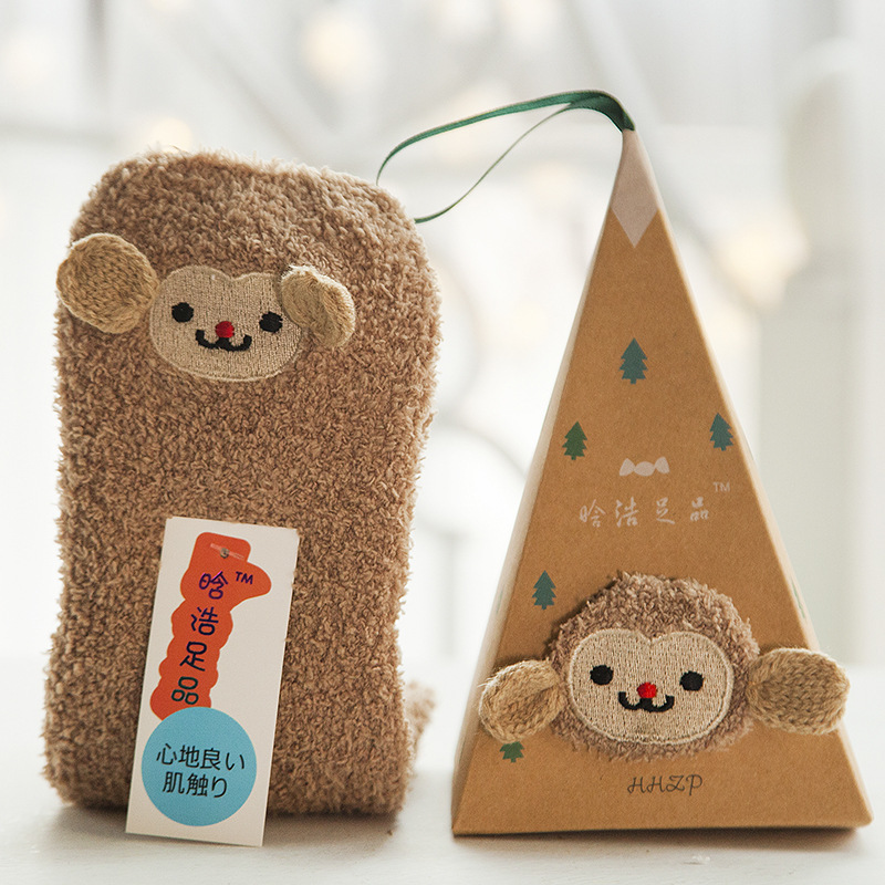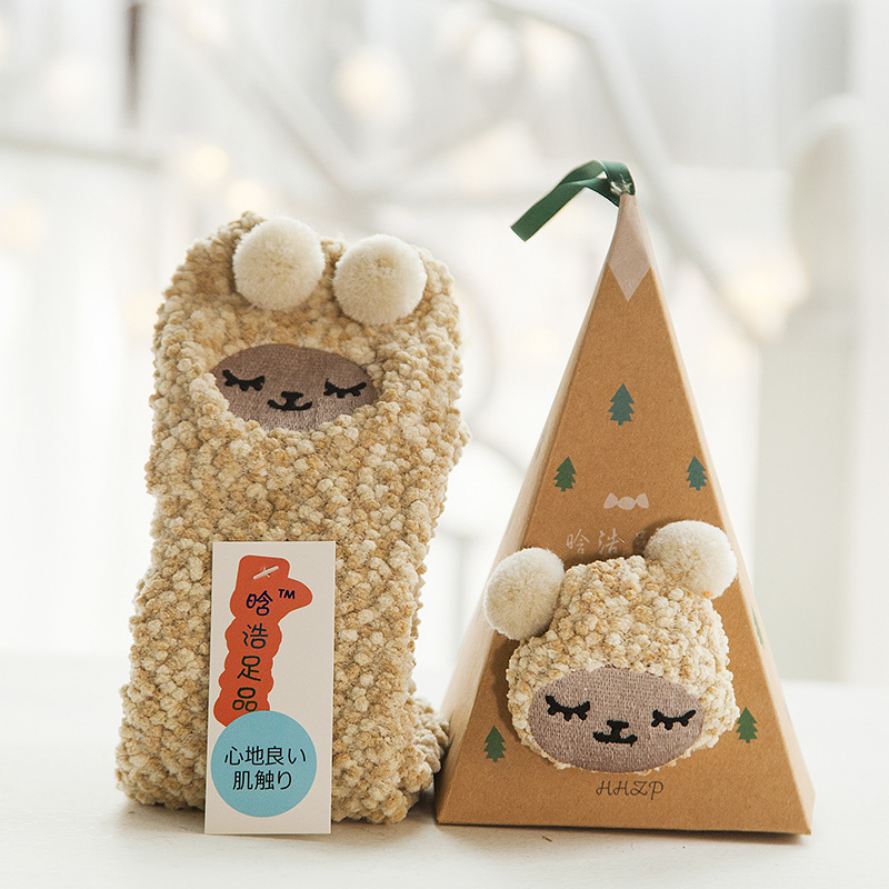 가을과 겨울 새로운 자수 입체 홈 산호 양털 만화 양말 박스형 바닥 양말 반 양털 여성 양말 크리스마스 양말스토어 가기