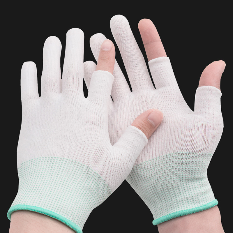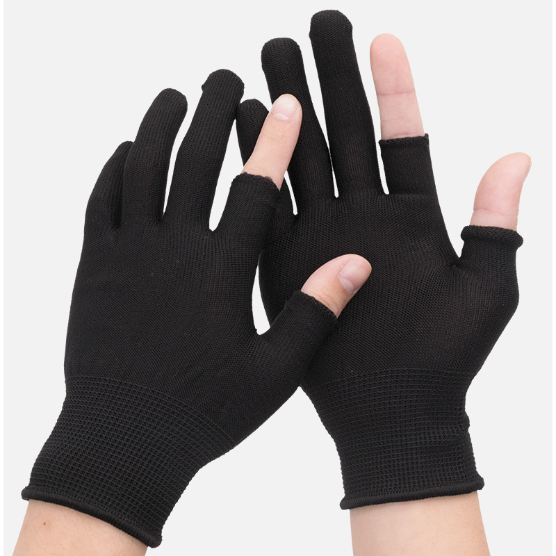 얇은 내마모성 노동 보호 장갑 남성용 나일론 작업 장갑 여성용 반 손가락 이슬 두 손가락 정전기 방지 차 따기 산업