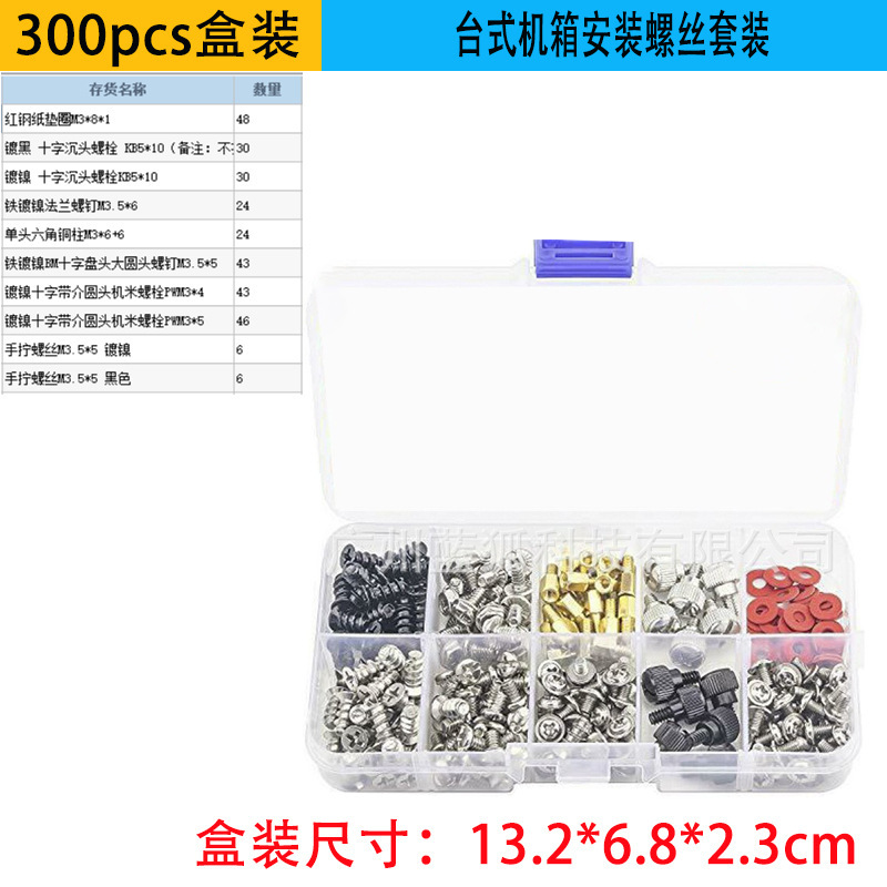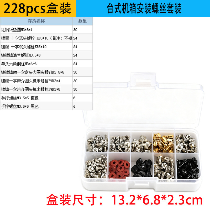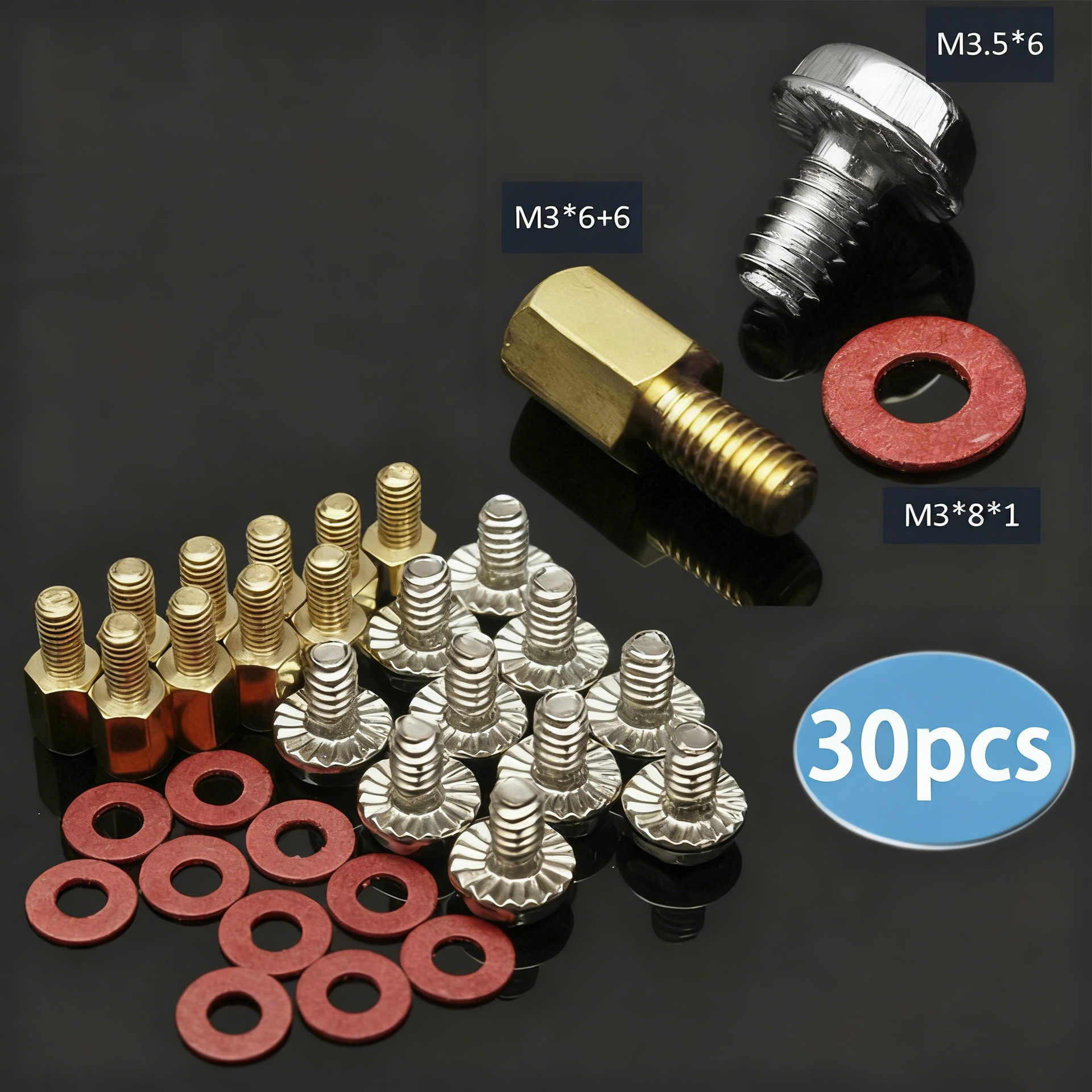 30pcs 袋装 台式机箱安装螺丝+红垫圈+单头六角铜柱