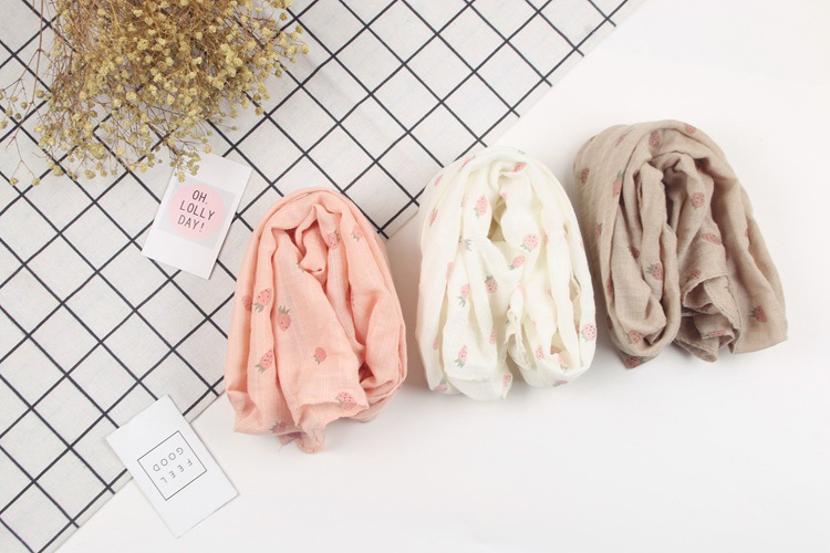 아기 스카프 겨울 어린이 스카프 봄과 가을 얇은 부드러운 아기 방풍 스카프 면 린넨 남아 스카프 딸기 여성