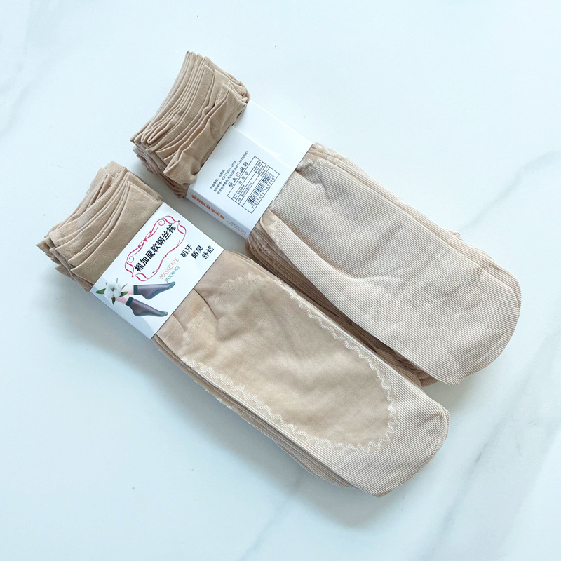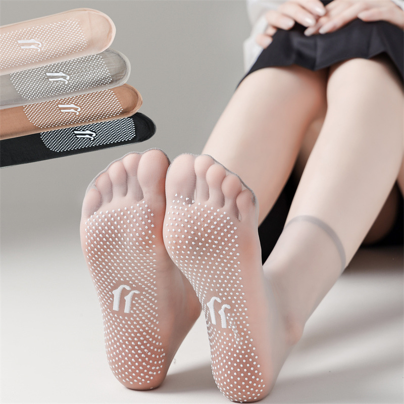 디스펜스드 젤링 처리된 미끄럼 방지 내구성 크리스탈 실크 여성용 면바닥 숏 스타킹 봄 여름용 마스크 스틸 스타킹 내마모성 땀 흡수 미끄럼 방지