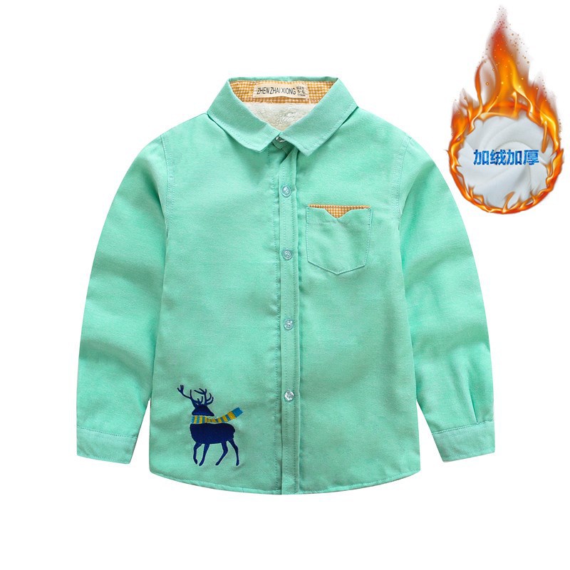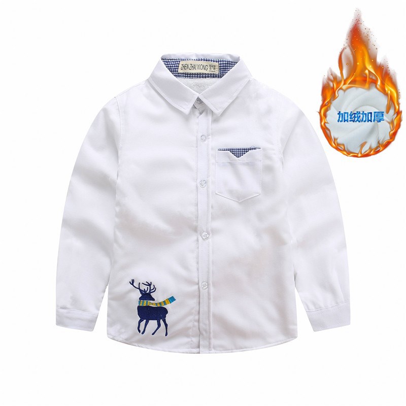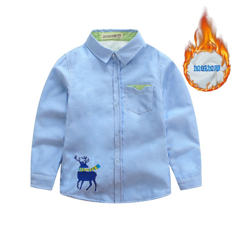 재고 도매 새로운 어린이 셔츠 긴 소매 캐주얼 만화 엘크 어린이 셔츠 겨울 기모 소년 셔츠