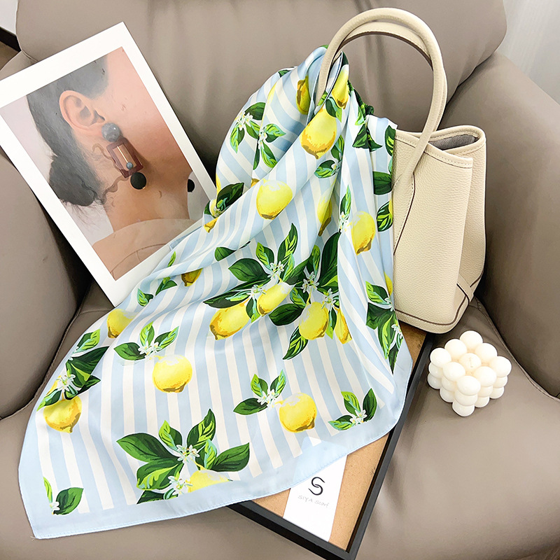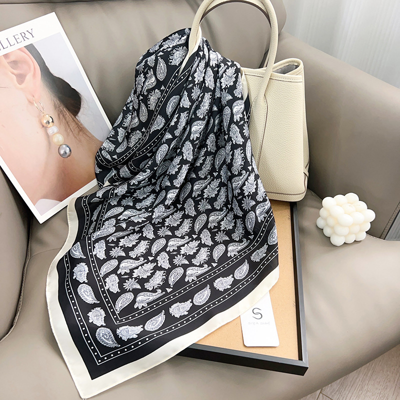 실크 스카프 여성용 스트라이프 흑백 인쇄 봄과 여름 새로운 장식 간단한 한국 패션 실크 스퀘어 도매