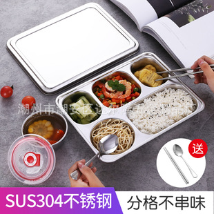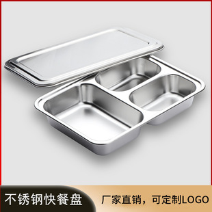 304不锈钢快餐盘 分格儿童餐盘分格食堂饭盘学生饭盒中式餐盘带盖