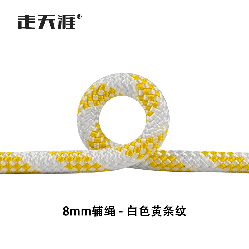 • 8mm 보조 로프 흰색 노란색 줄무늬