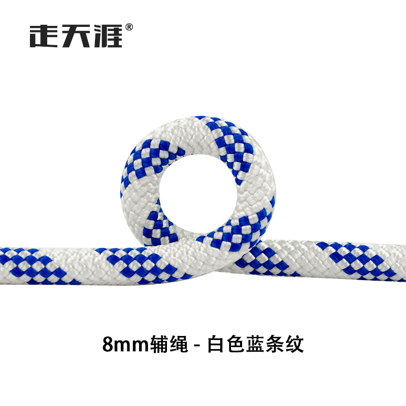 • 8mm 보조 로프 흰색 파란색 줄무늬