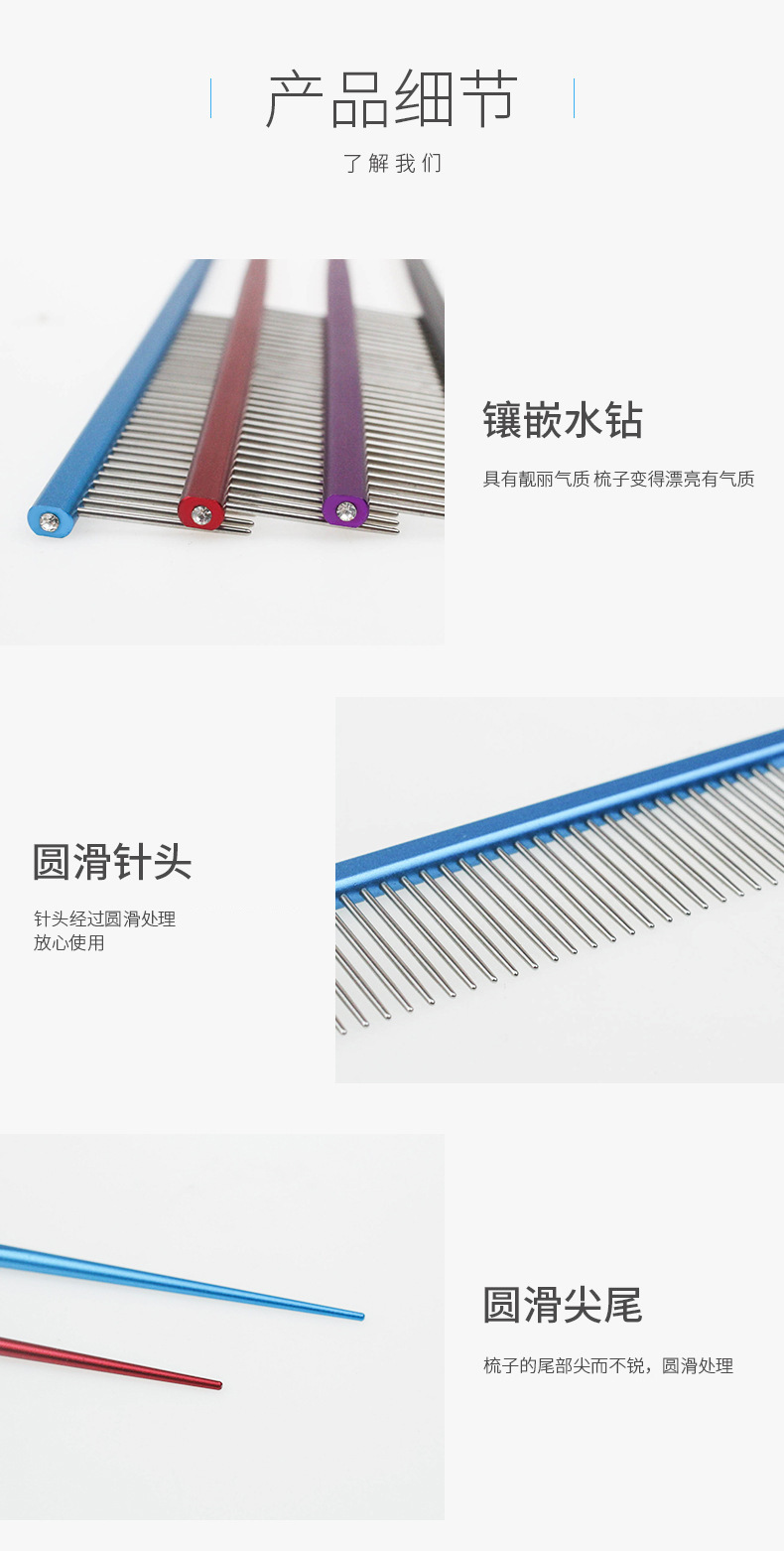 Hartley 애완 동물 미용 라인 빗 개 라인 빗 강철 빗 뾰족한 꼬리 빗 요크셔 긴 머리 개 애완 동물 빗 6