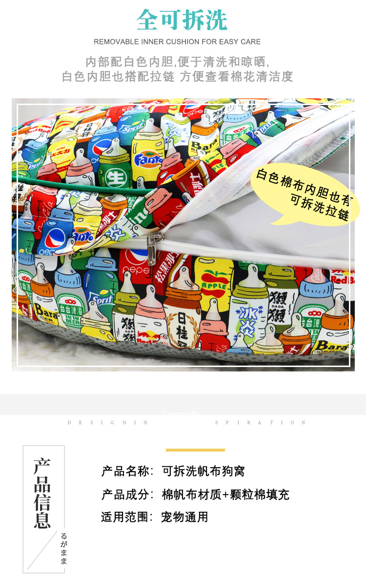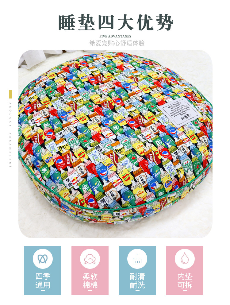 개 사육장 캔버스 딸기 패턴 면화 침대 고양이 만화 라운드 패드 머리카락의 세대