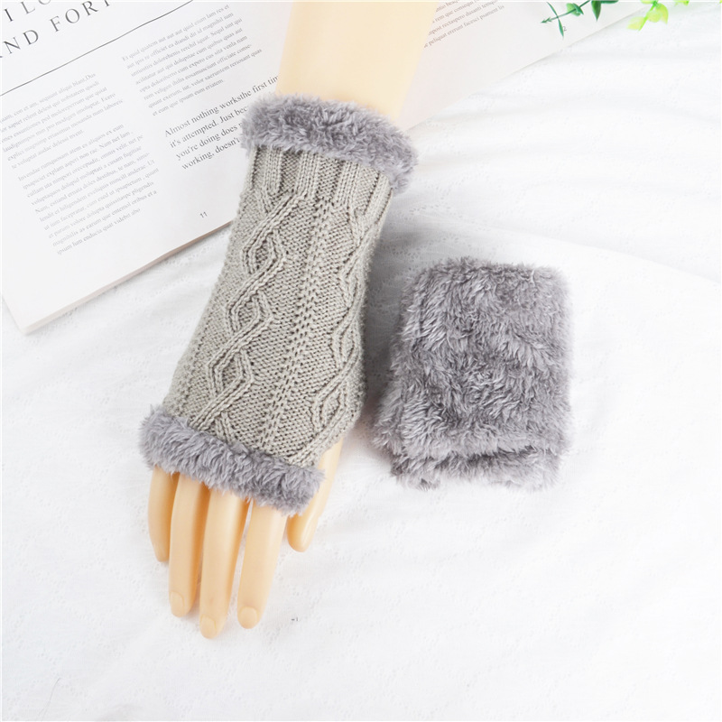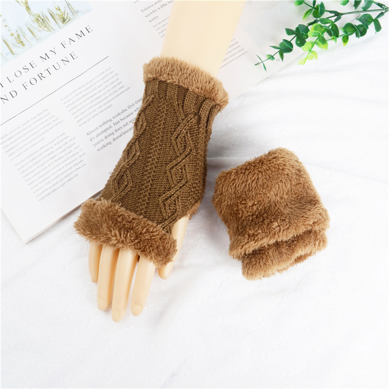 니트 반 손가락 다이아몬드 기모 두꺼운 짧은 노출 반 손가락 장갑 간단한 단색 일본 성인 겨울 따뜻한 장갑