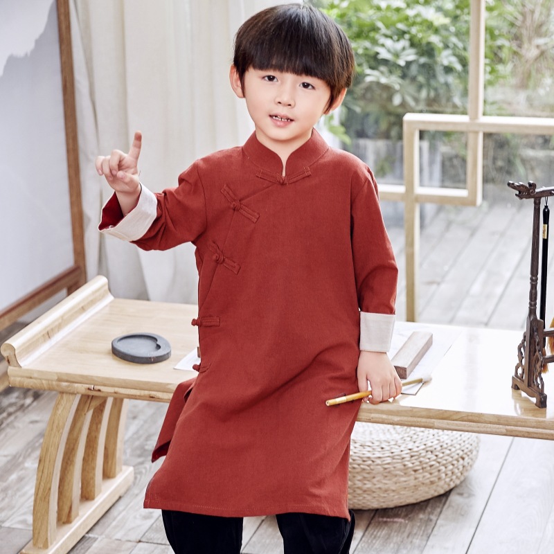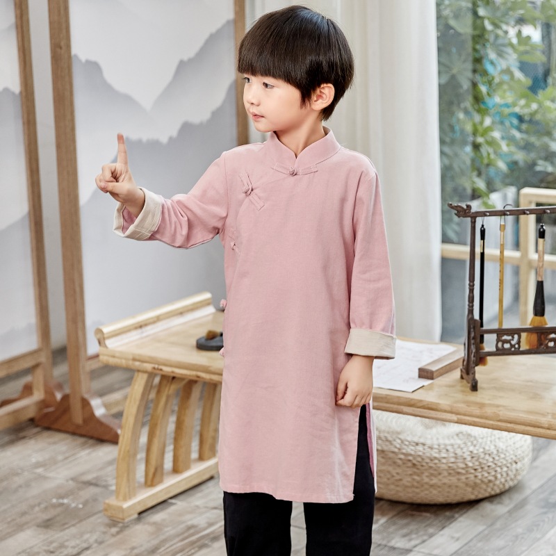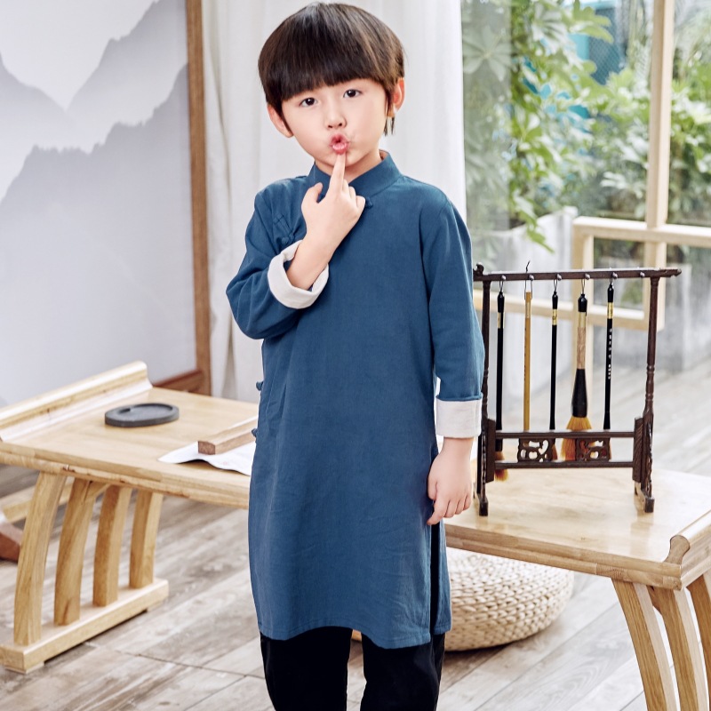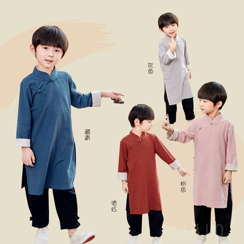 어린이 가을 긴 Hanfu 소년의 면과 린넨 긴 로브와 만다린 코트 무술 공연 긴 셔츠 큰 코트 어린이 크로스 코트 탱 세트스토어 가기