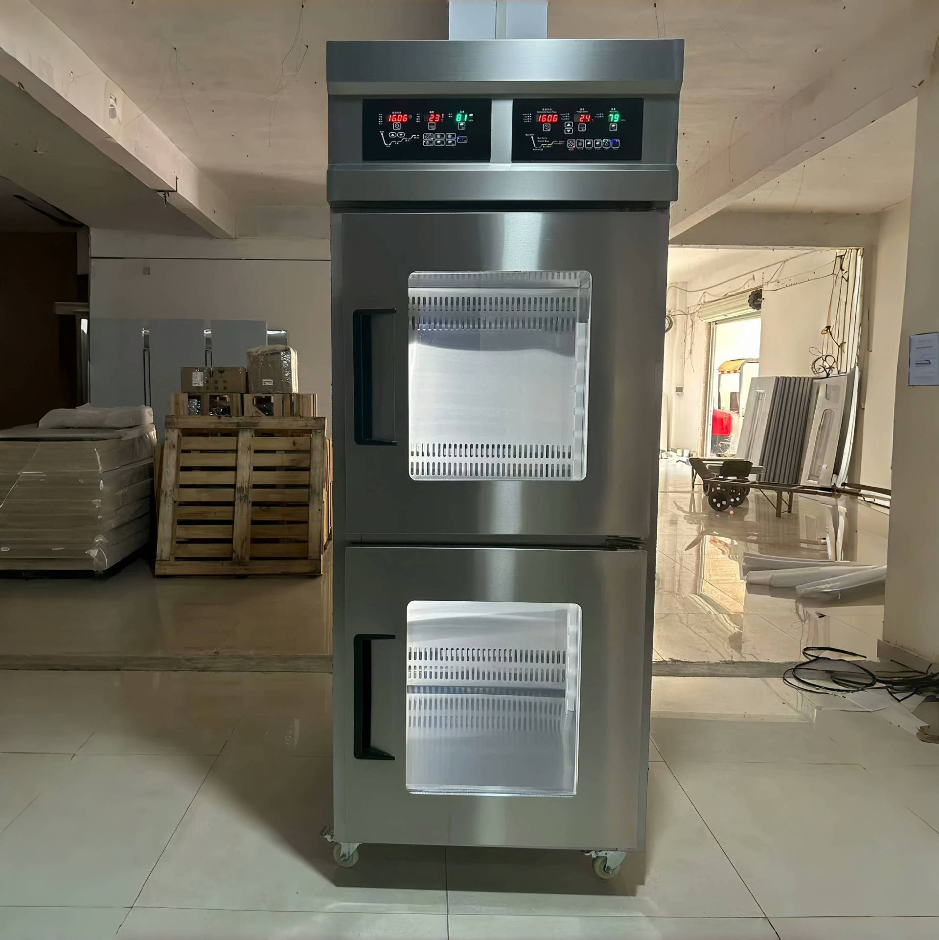 面包发酵箱是根据面包发酵原理和要求而进行设计的电热产品。它是利用电热管,通过控制电路,使用发酵箱内产生相对湿度为80-85%,温度为36℃-38℃是适合面包发酵之环境,帮助造型后的面包坯完成后发酵过程。它具有结构紧凑、美观大方、操作简单、使用可靠等特点,是面点烘焙的配套设备。