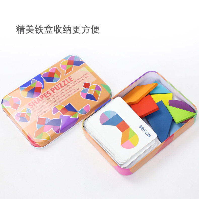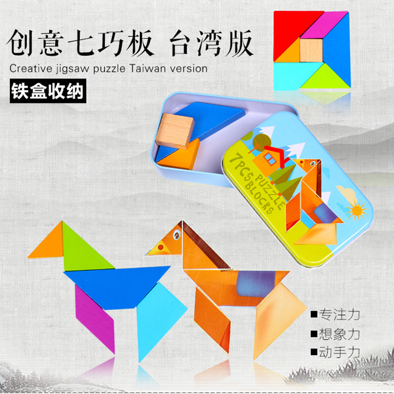 어린이 나무 퍼즐 조기 교육 퍼즐 유치원 교육 보조 철 상자 Tangram 지적 개발 창조적 인 빌딩 블록 장난감스토어 가기
