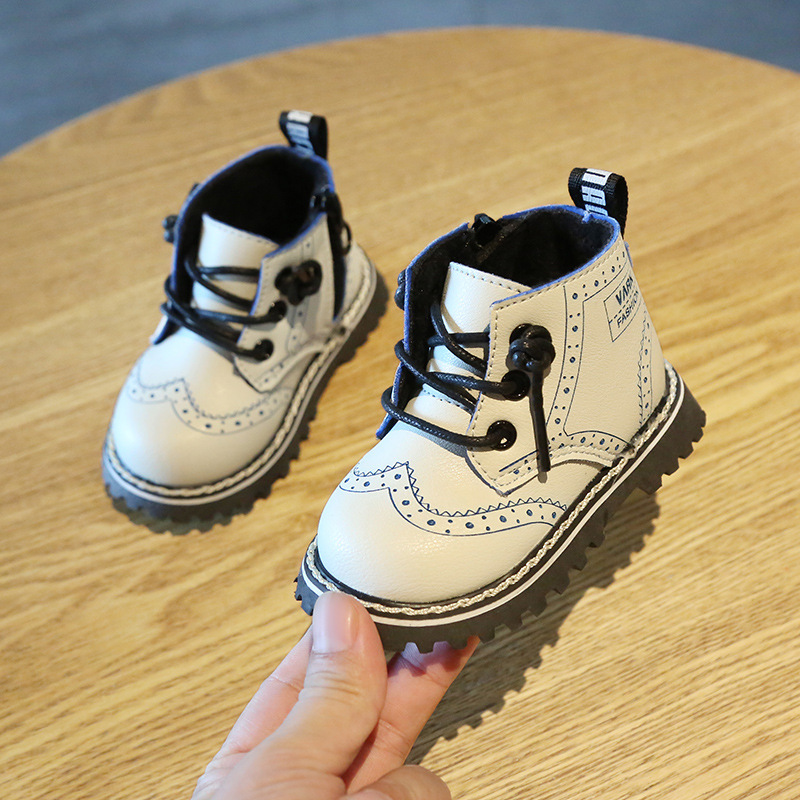 가을과 겨울 1 2 세 여성 아기 가죽 신발 아기 어린이 신발 소년과 소녀 부드러운 바닥 미끄럼 방지 유아 어린이를위한 마틴 부츠스토어 가기