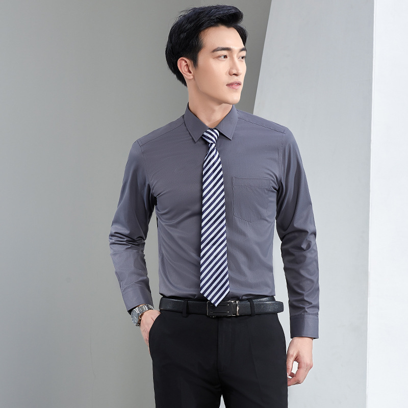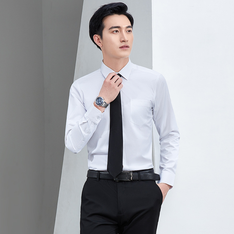 다림질이 필요 없는 흰색 전문직 셔츠 남성용 긴팔 오피스 부동산 주름방지 통근 비즈니스 셔츠 정장 작업복스토어 가기