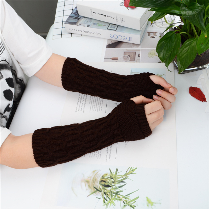 Yifan 가을과 겨울 야외 따뜻한 사무실 타이핑 한국어 단색 일본 X 패턴 긴 소매 니트 암 커버