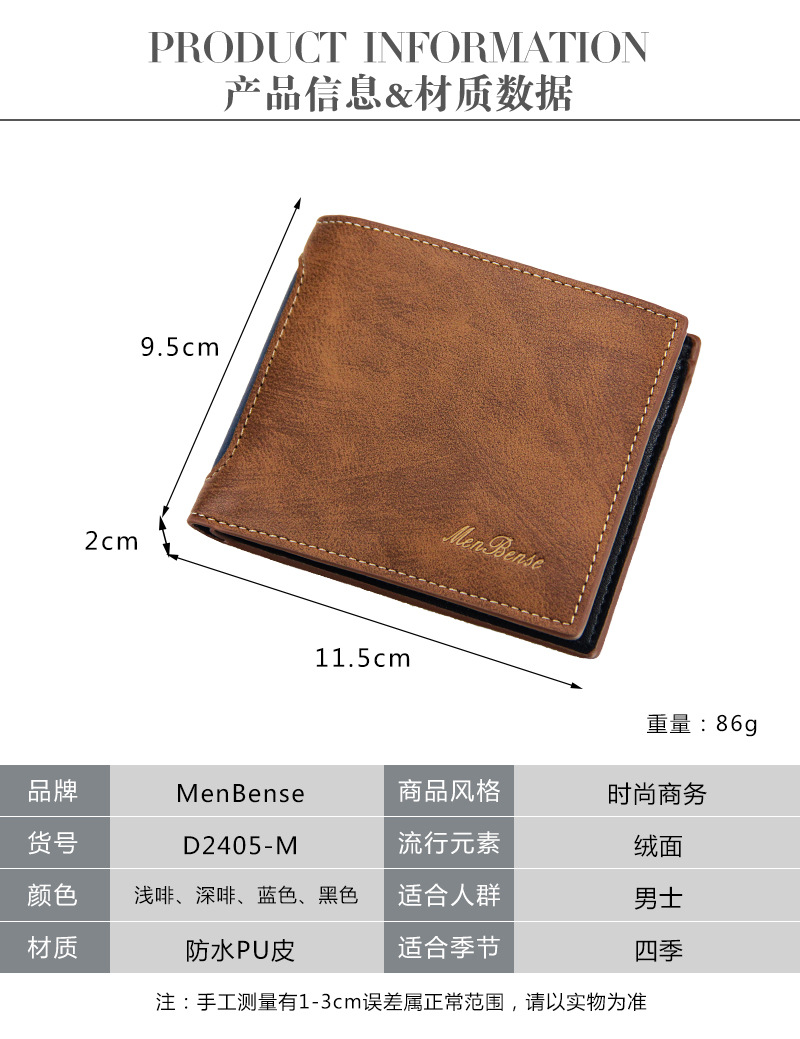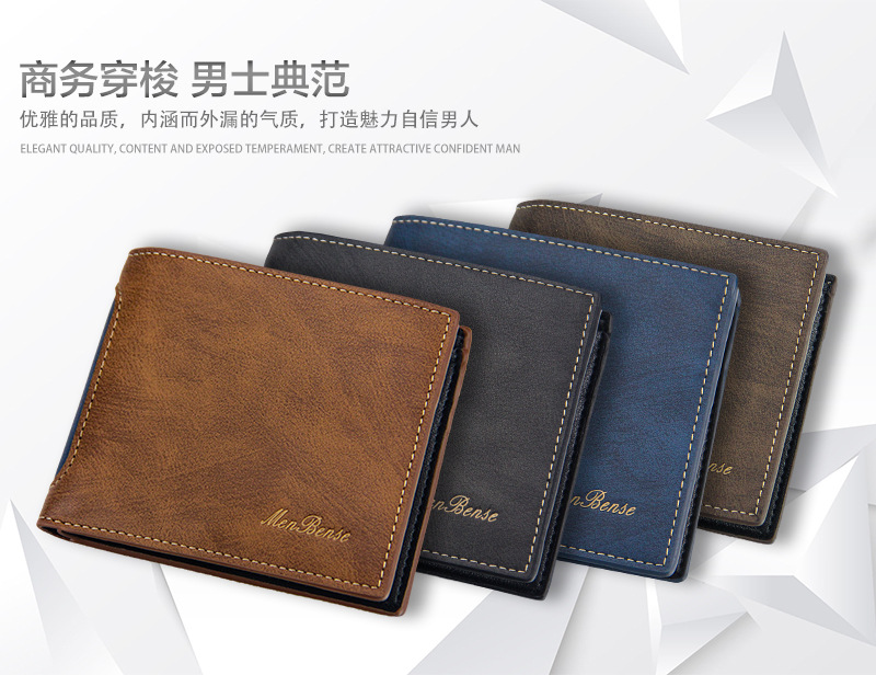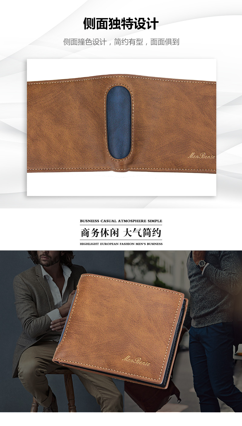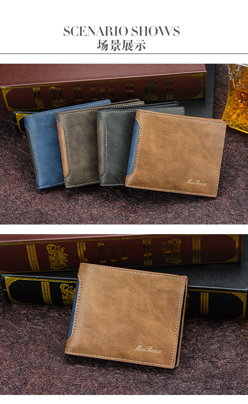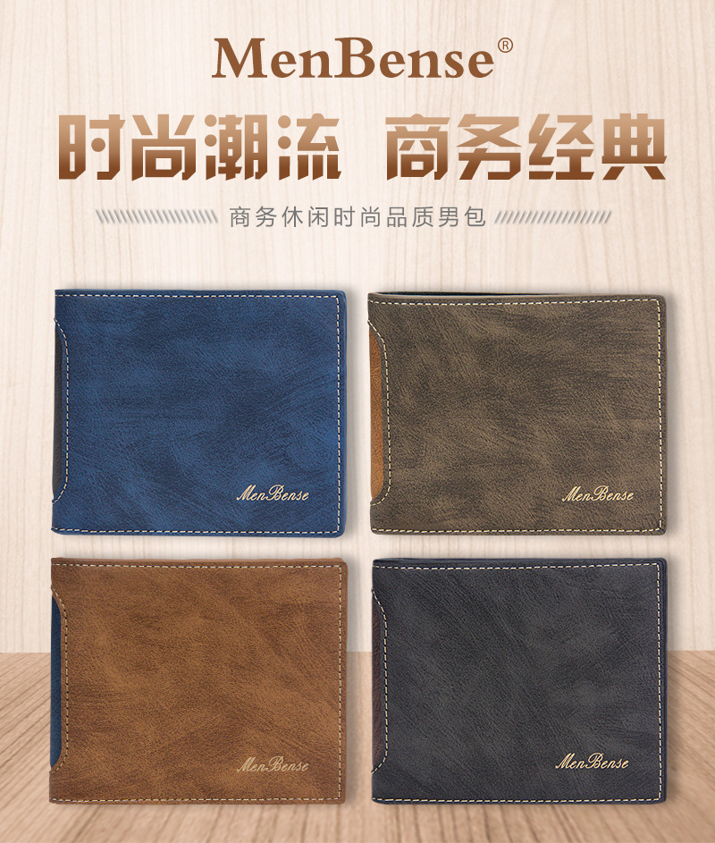 MenBense 새로운 남성 지갑 짧은 패션 캐주얼 스티칭 멀티 카드 3 중 가방 남성 지갑스토어 가기