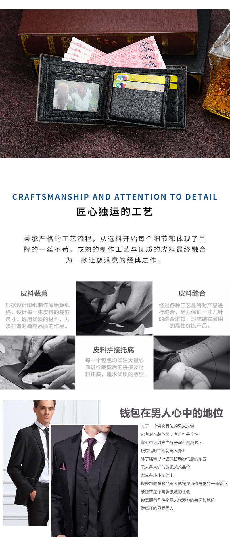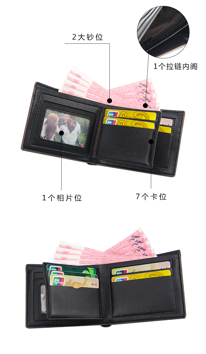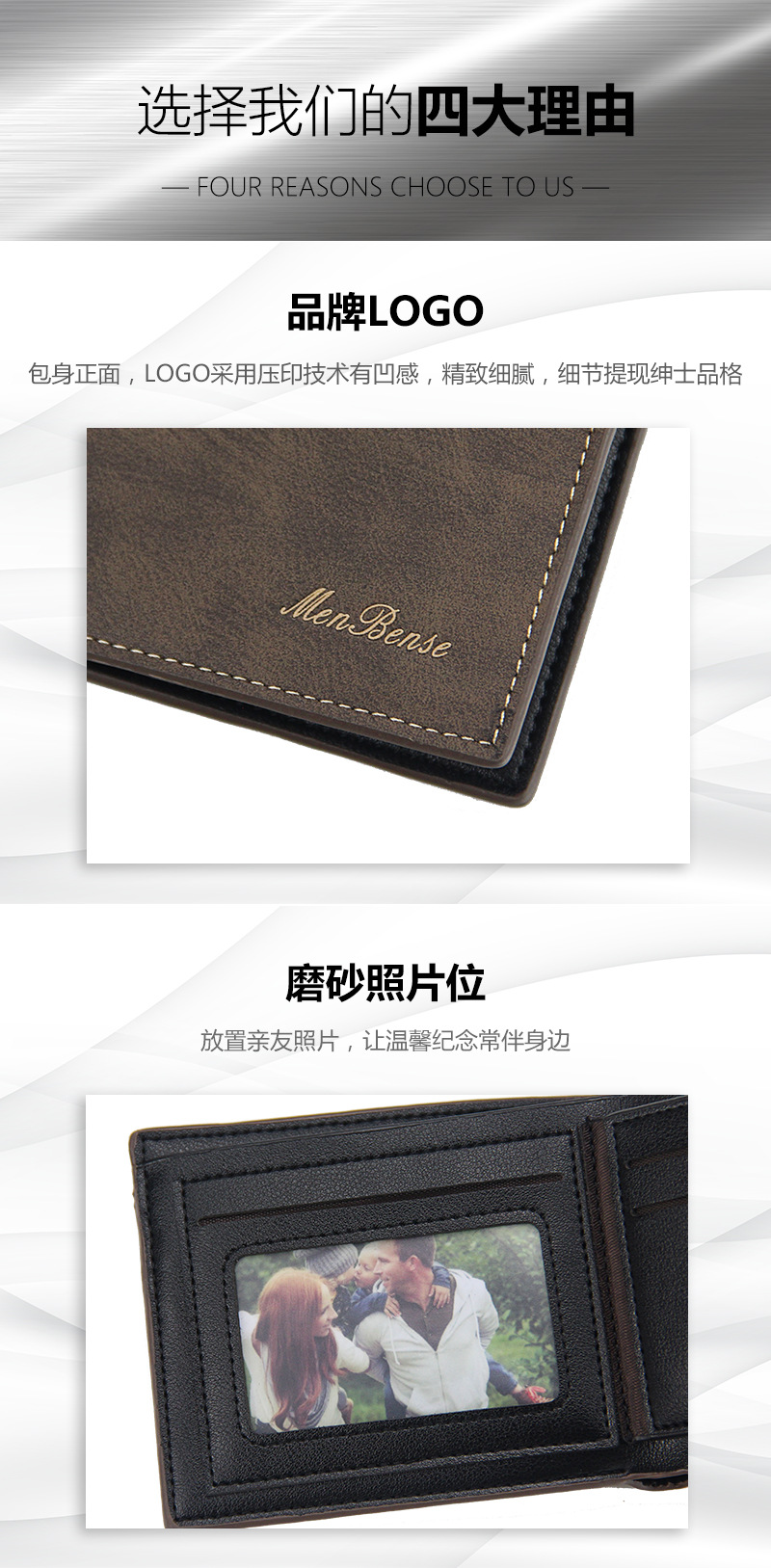 MenBense 새로운 남성 지갑 짧은 패션 캐주얼 스티칭 멀티 카드 3 중 가방 남성 지갑스토어 가기