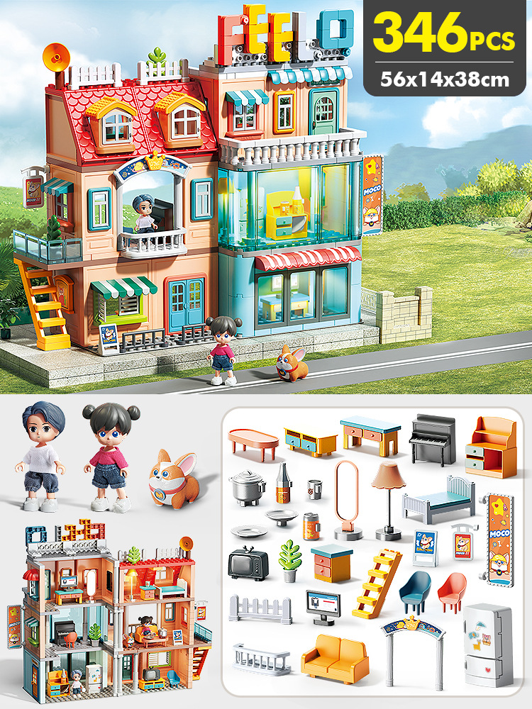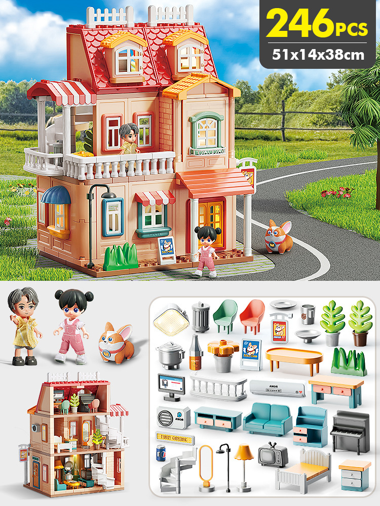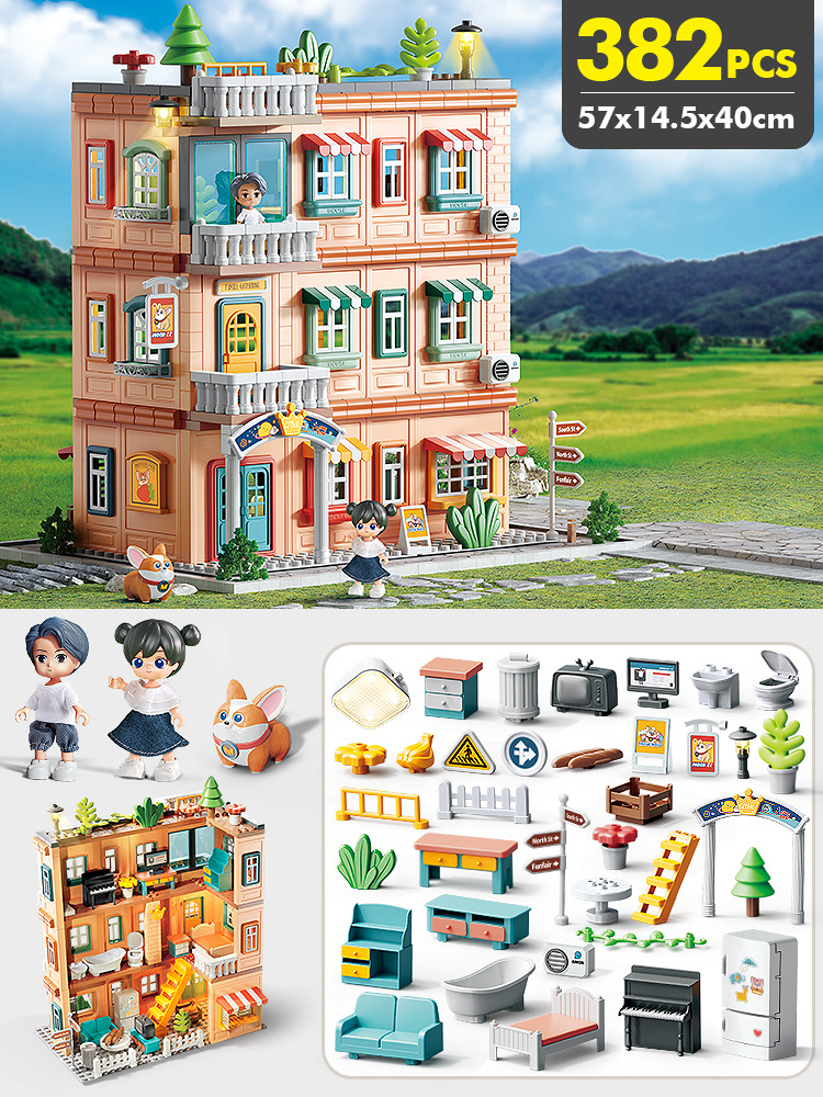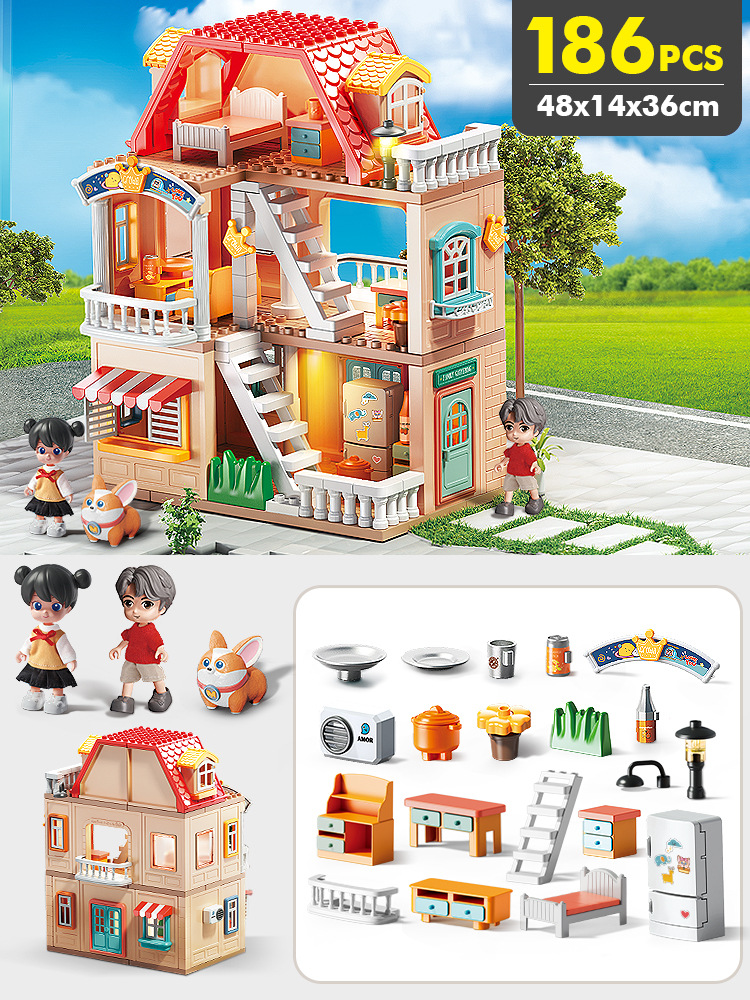 TikTok 라이브 방송 어린이 놀이 장난감 작은 빨간 승마 책 추천 조립 빌라 하우스 빌딩 블록 소녀를위한 생일 선물스토어 가기