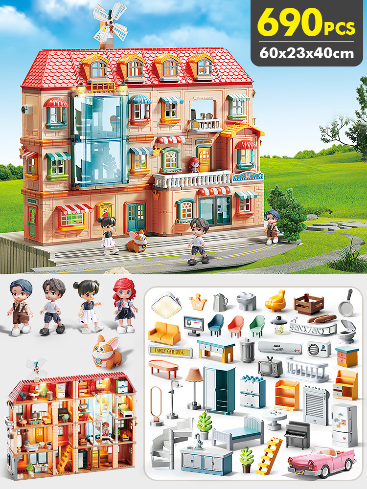 TikTok 라이브 방송 어린이 놀이 장난감 작은 빨간 승마 책 추천 조립 빌라 하우스 빌딩 블록 소녀를위한 생일 선물