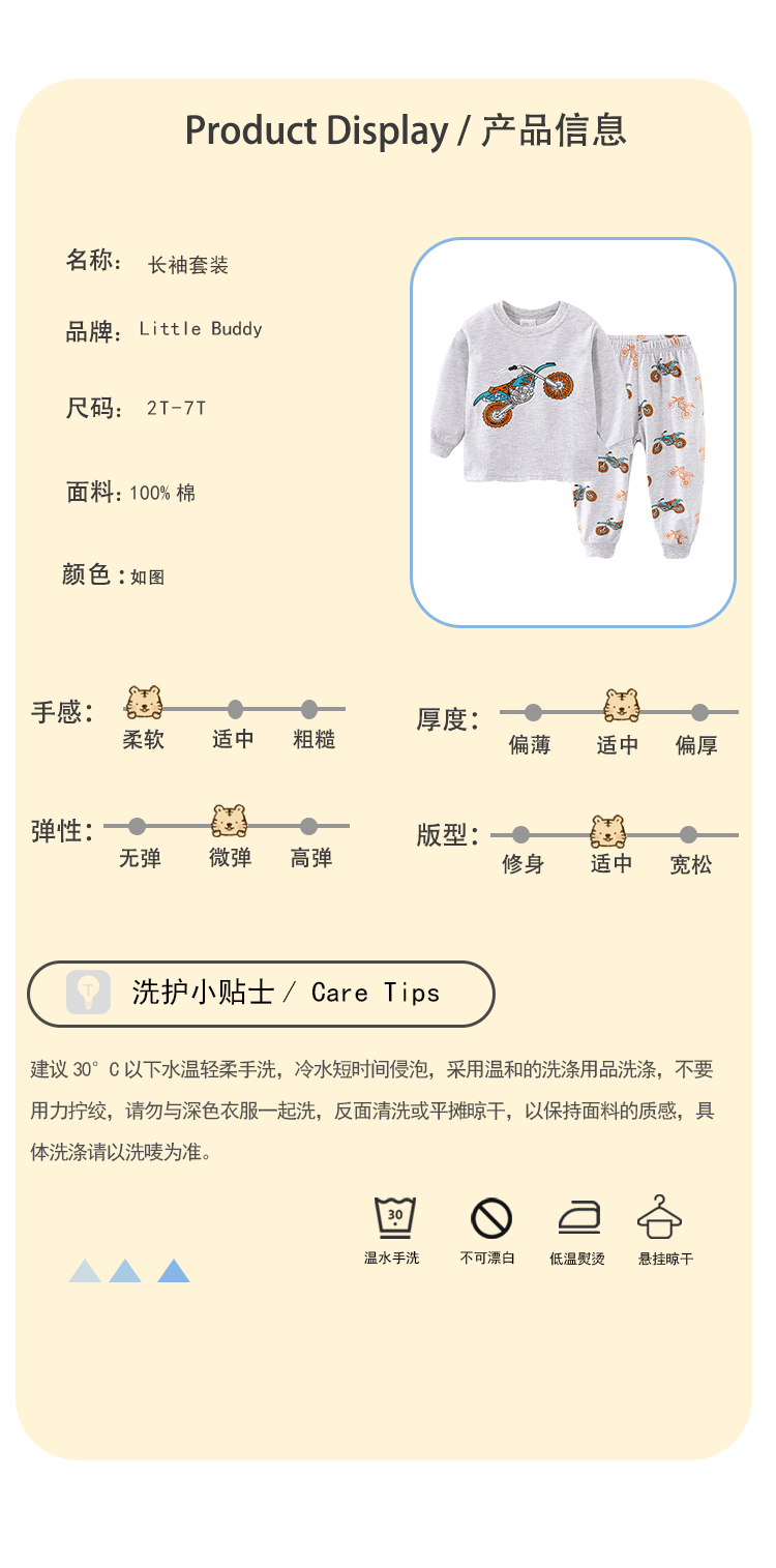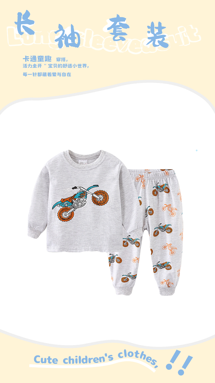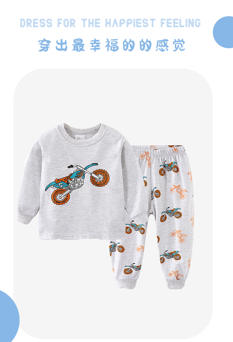 긴 소매 어린이 소년 면화 세트 어린이 의류 오토바이 라운드 넥 홈웨어 투피스 세트 원피스스토어 가기