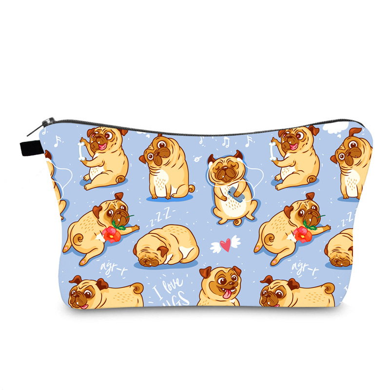 유럽과 미국의 뜨거운 판매 디지털 인쇄 만화 개 여성용 화장품 가방 클러치 백 보관 가방 다기능 여행 세척 가방