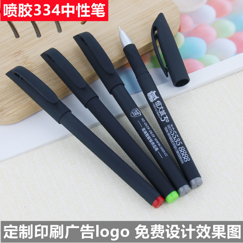 此款喷胶中性笔有喷胶和磨砂供选择经典简约的外观设计、笔管圆滑、握感舒适、子弹头笔尖、耐磨耐用、书写细腻,可定制印刷广告logo赠送礼品笔