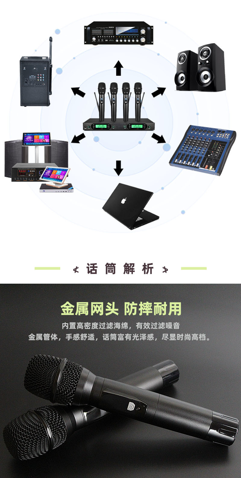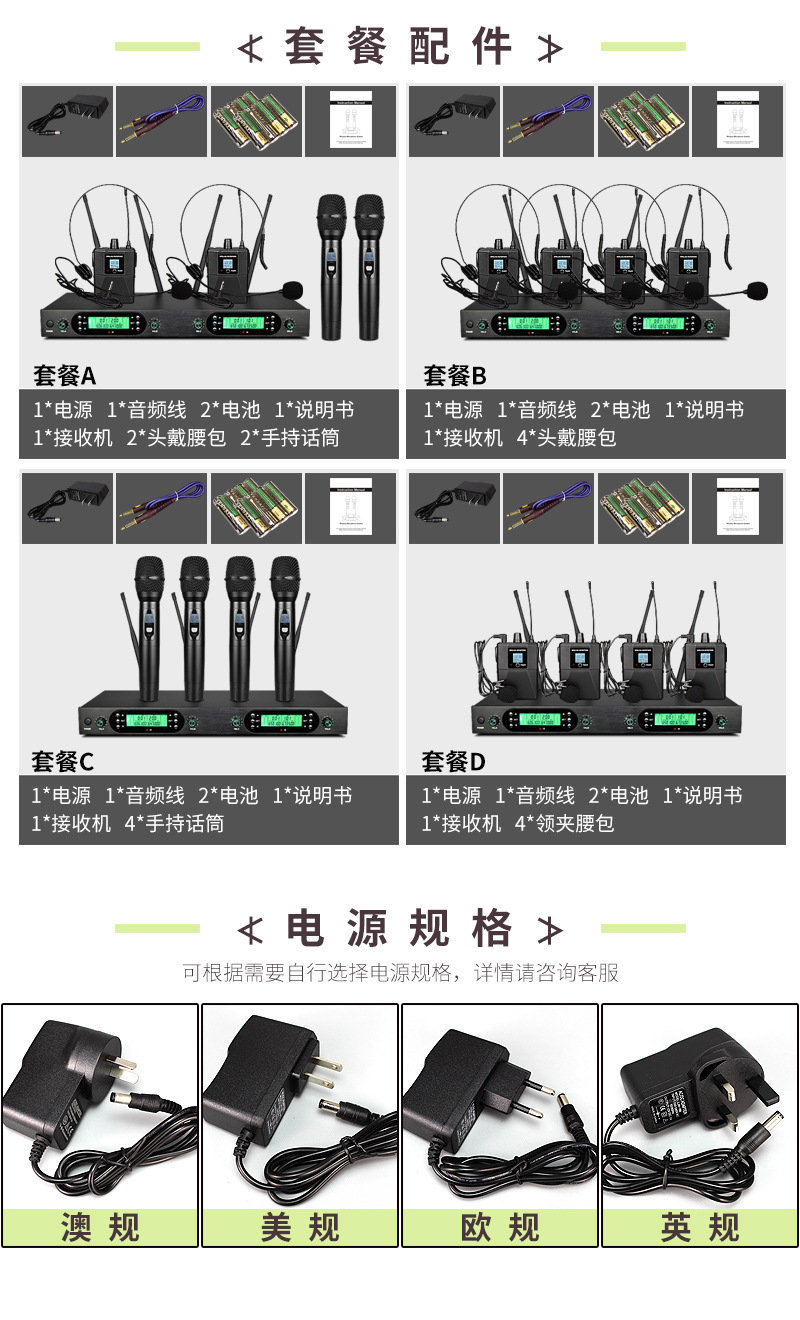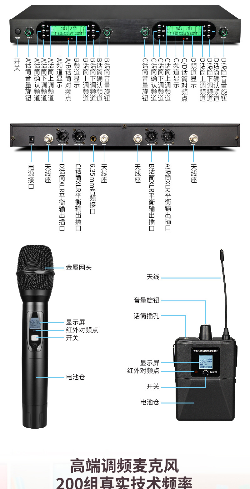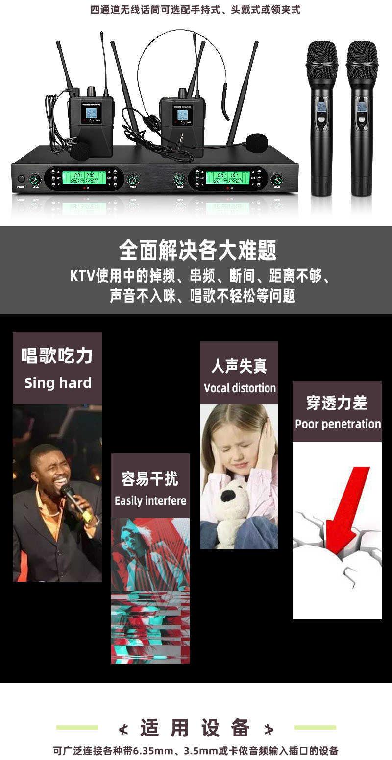 FM U-밴드 스크린 탑재 무선 마이크 1대4 전문 무대 공연 회의용 마이크 사운드 카드 공연 전용