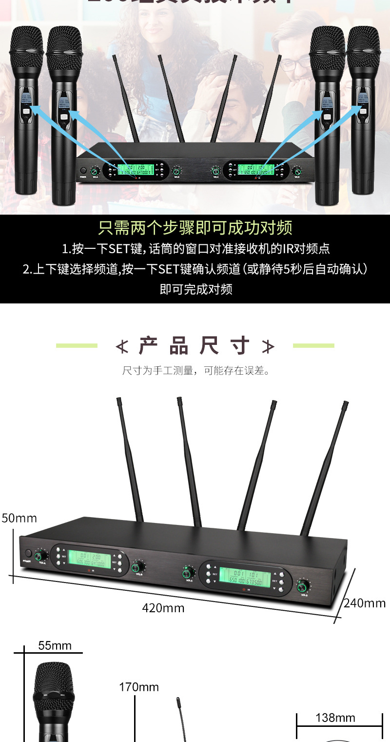 FM U-밴드 스크린 탑재 무선 마이크 1대4 전문 무대 공연 회의용 마이크 사운드 카드 공연 전용스토어 가기