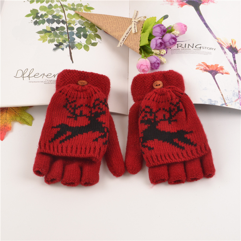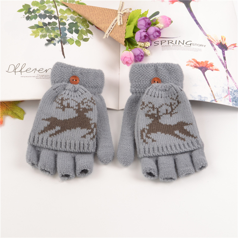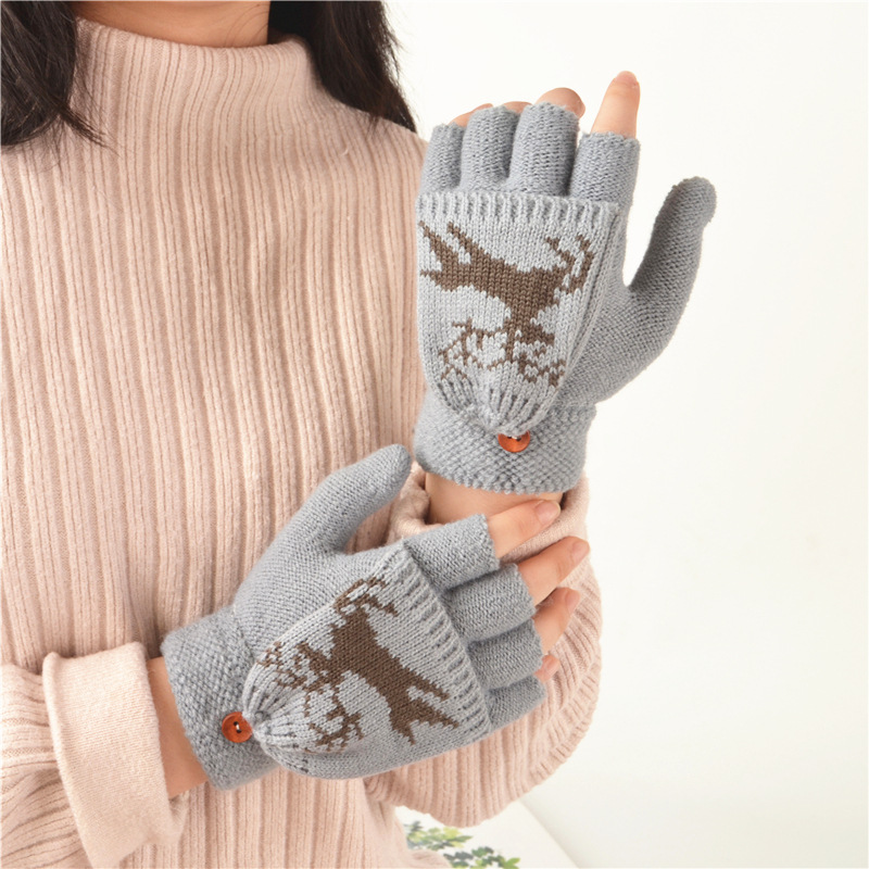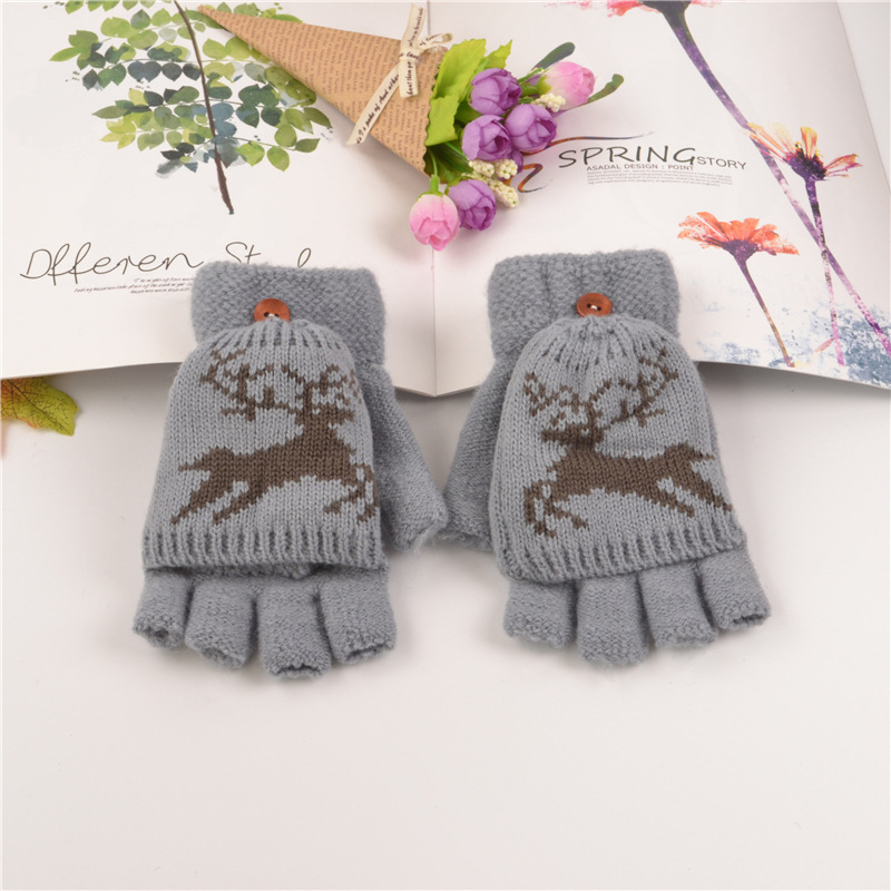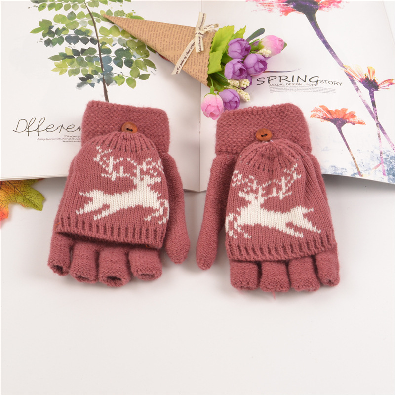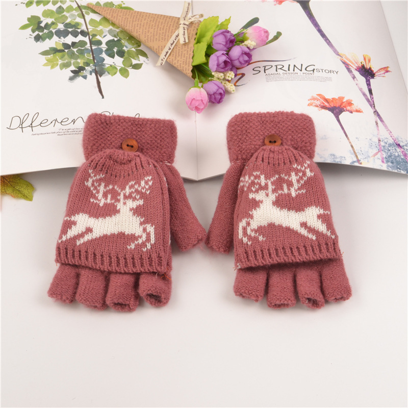 부드러운 소녀 장갑 여자의 성인 가을과 겨울 일본식 손가락 노출 새끼 사슴 장갑 귀여운 반 손가락 따뜻한 니트 아크릴 장갑
