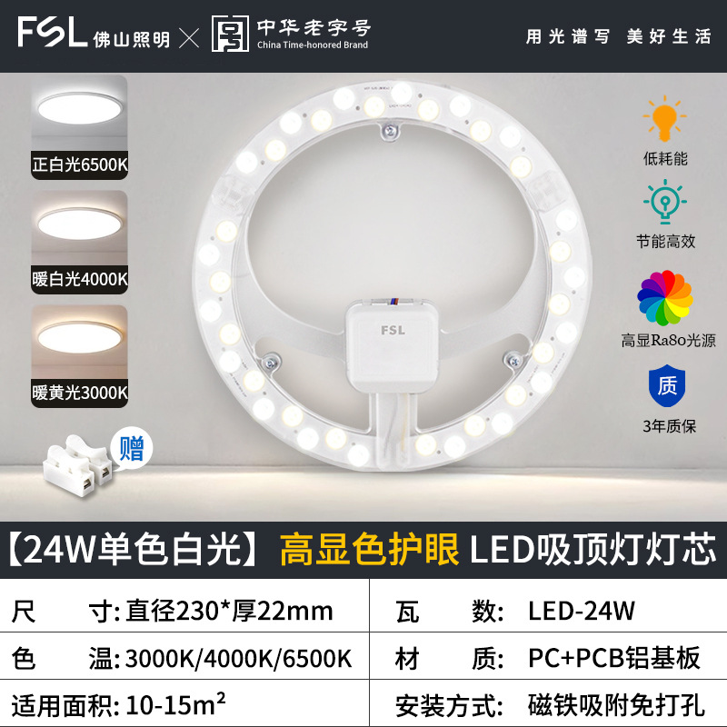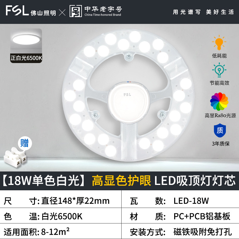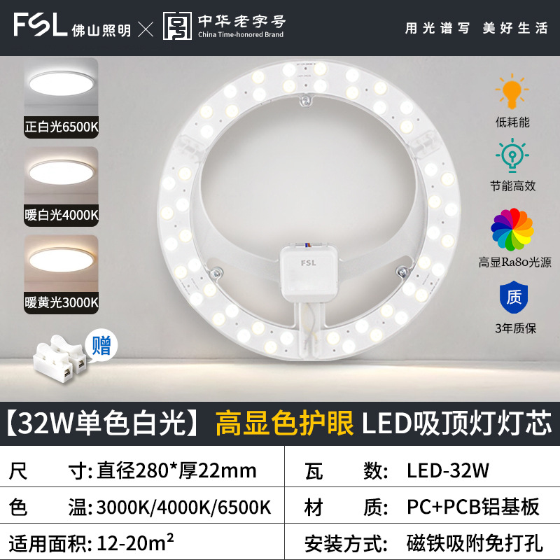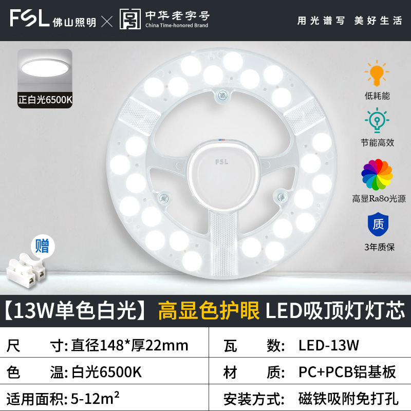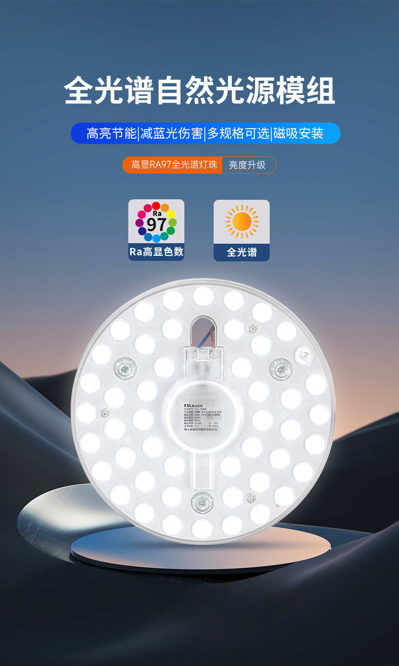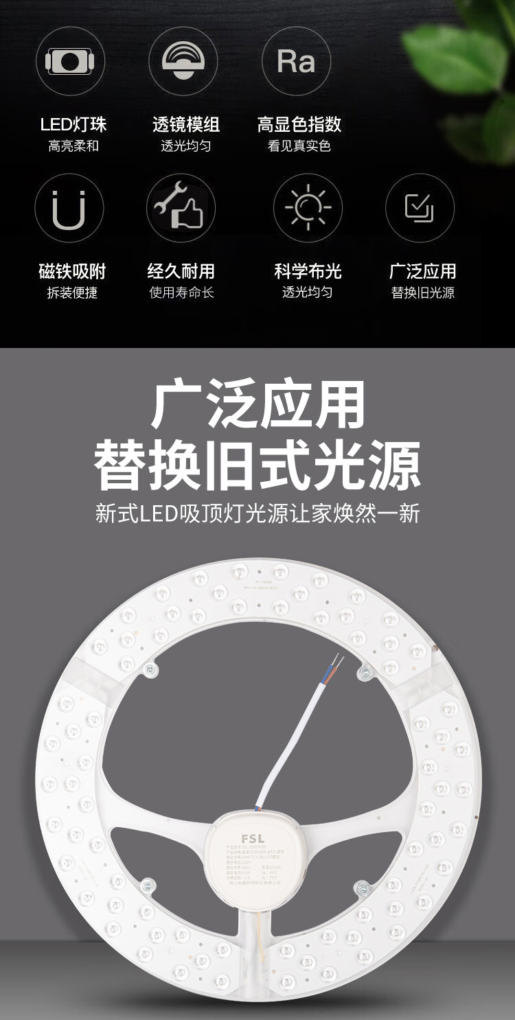 FSL 불산 조명 전체 스펙트럼 LED 천장 램프 재건 보드 SMD 광원 원형 교체 윅 모듈 램프 패널
