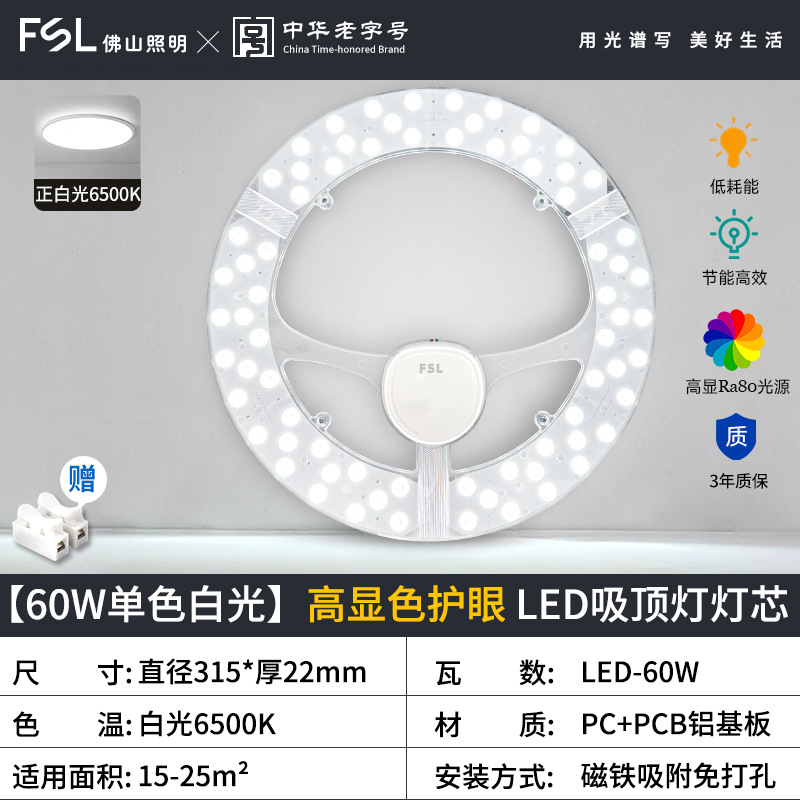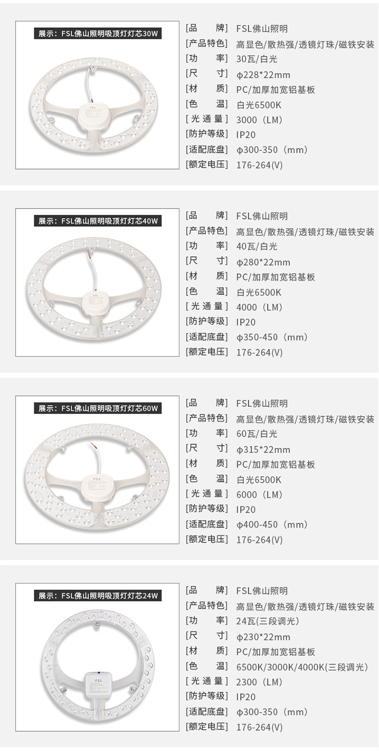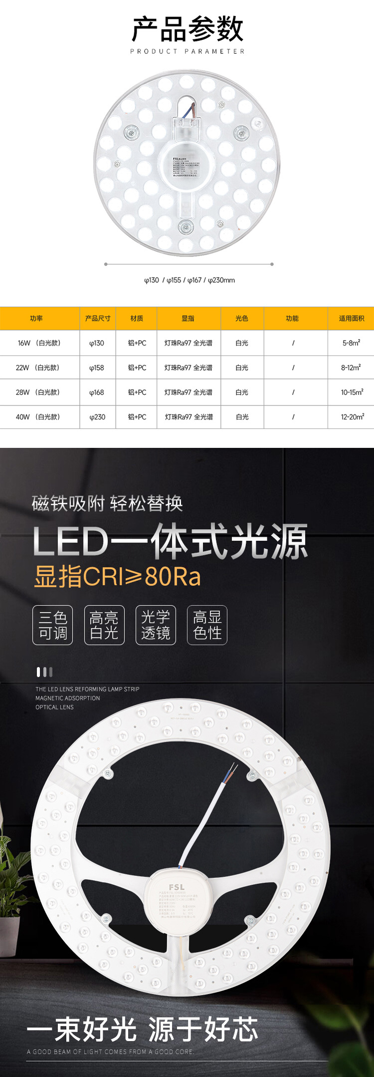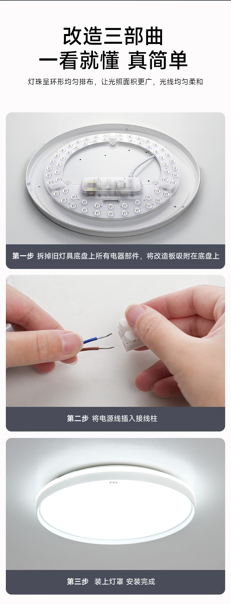FSL 불산 조명 전체 스펙트럼 LED 천장 램프 재건 보드 SMD 광원 원형 교체 윅 모듈 램프 패널