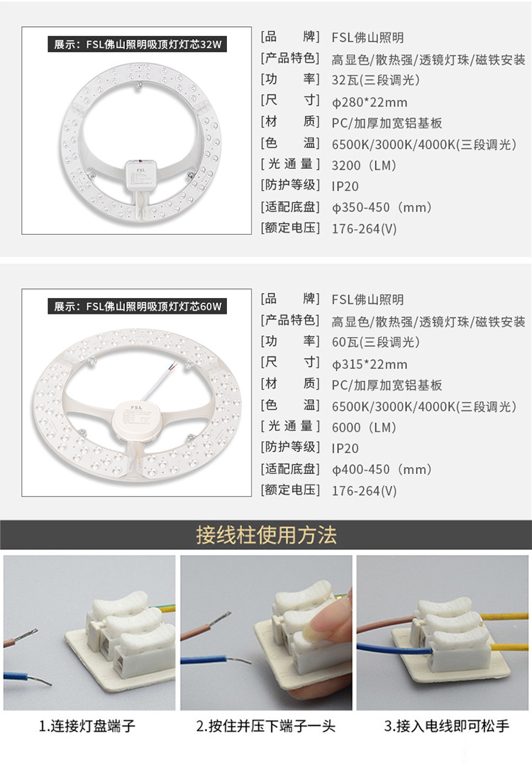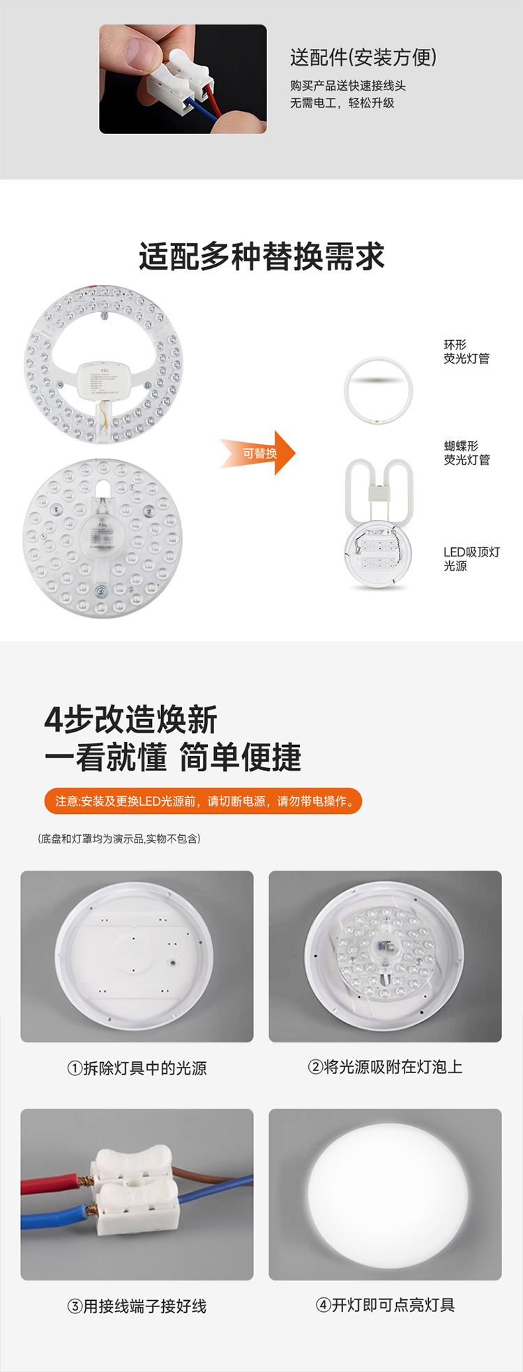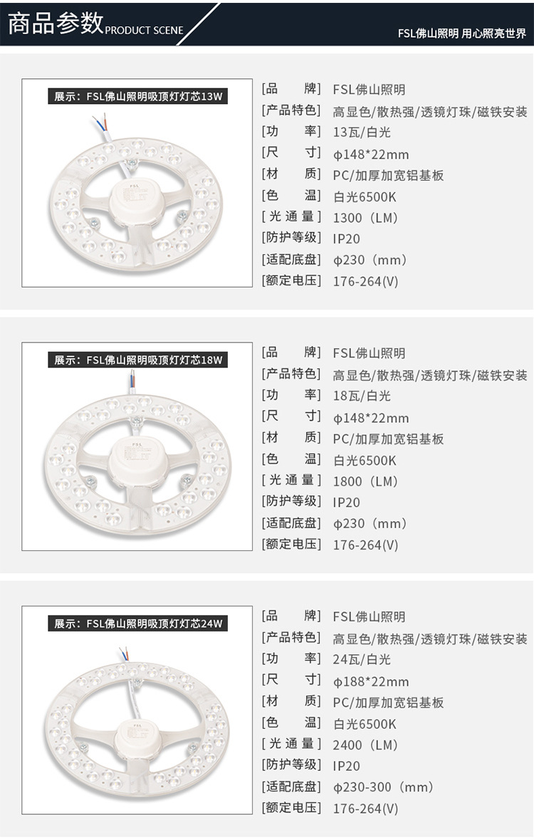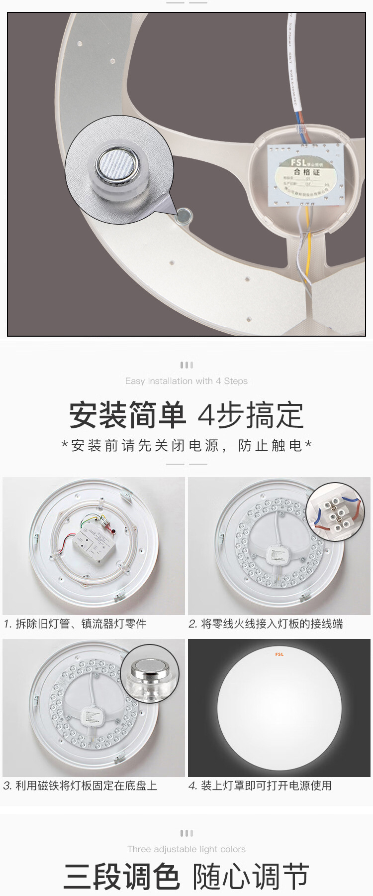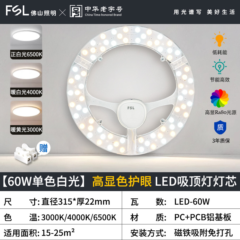 FSL 불산 조명 전체 스펙트럼 LED 천장 램프 재건 보드 SMD 광원 원형 교체 윅 모듈 램프 패널