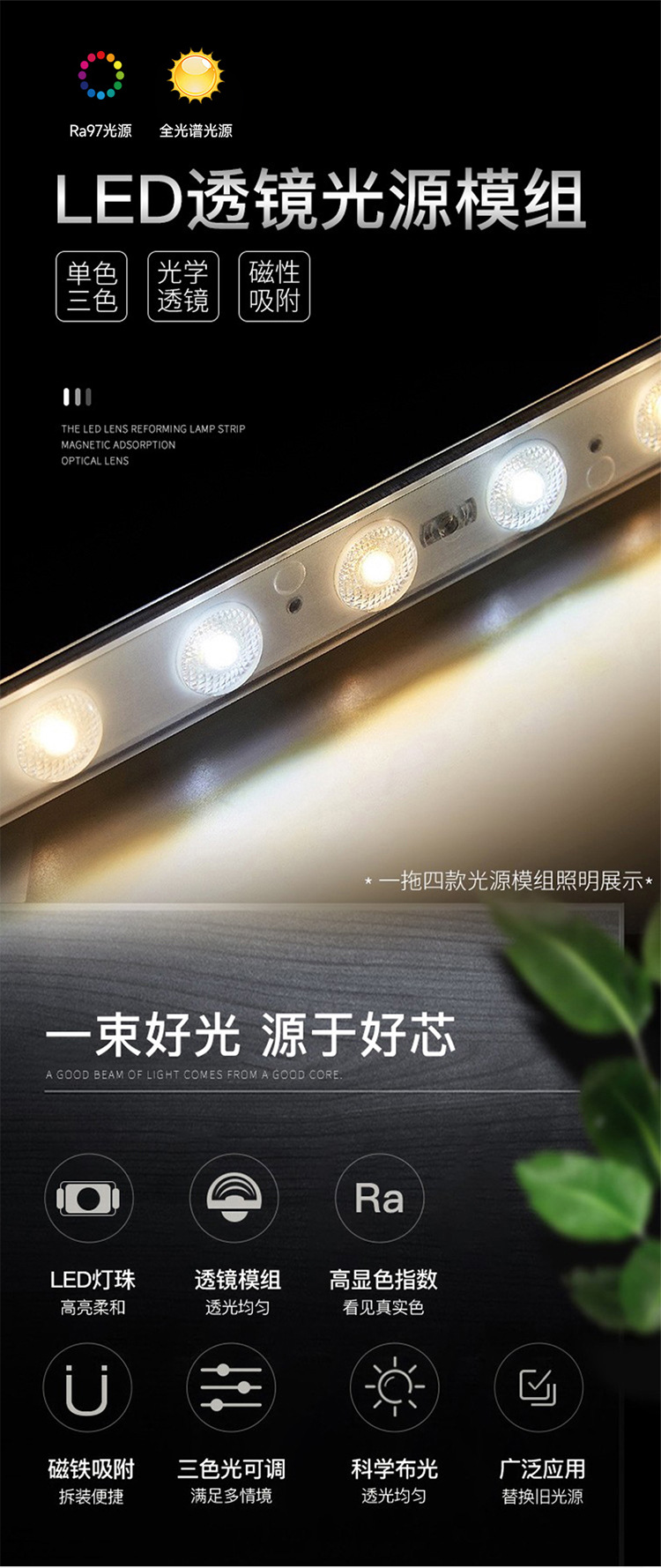 • ★전체 스펙트럼 Ra97★40W-3톤 조명 [—1 드래그 4 스트립 모듈]